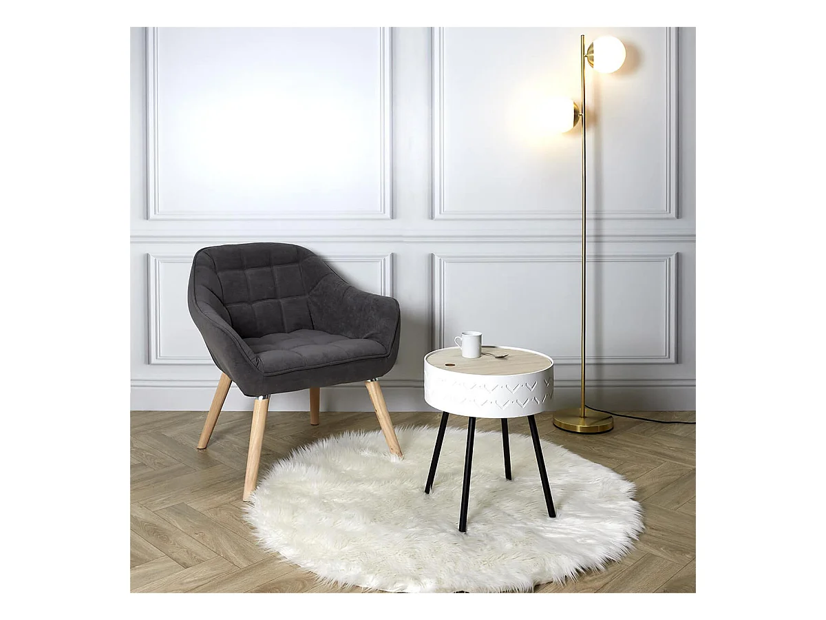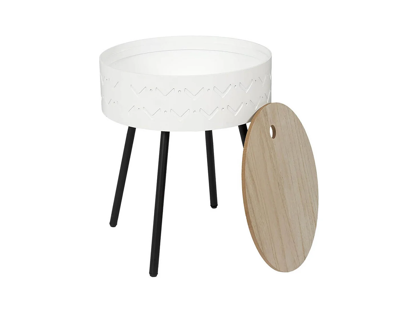 CORALLY - Table d'Appoint Ronde Blanche avec Coffre