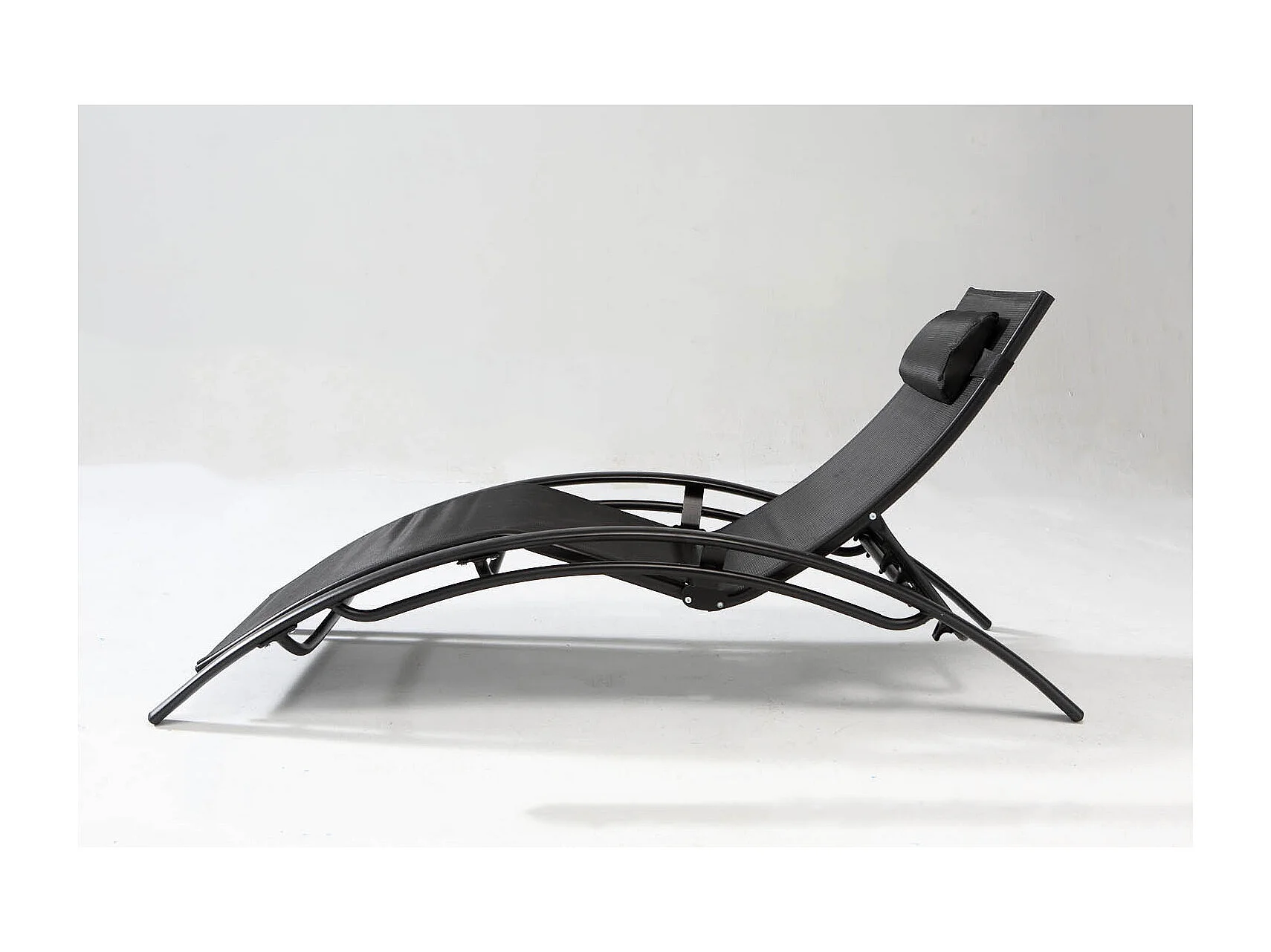 Chaise longue avec oreiller acier et textilène noir