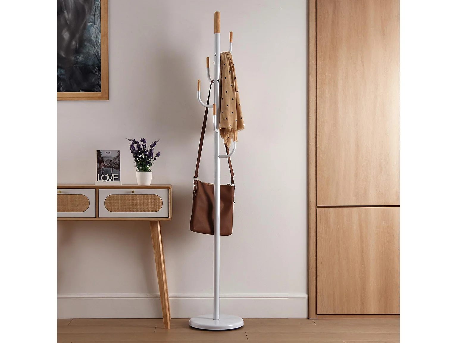 Porte-Manteau sur pied Lina, 174 x 30 x 30 cm, Métal, Blanc