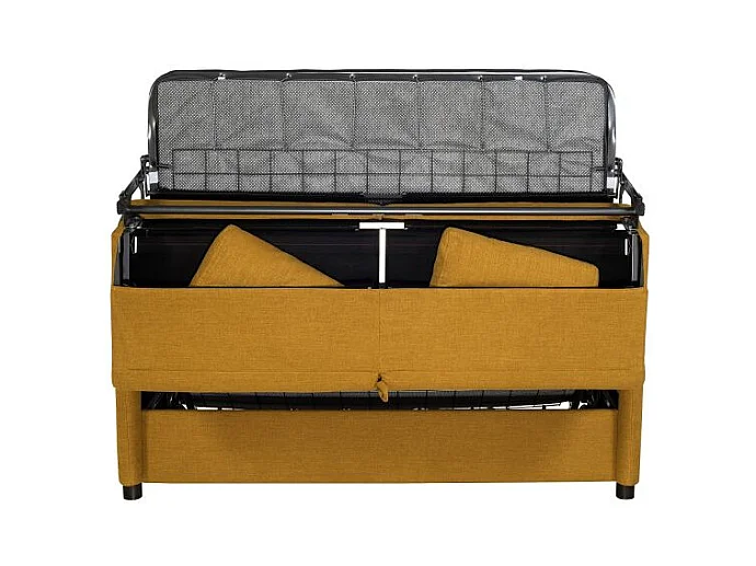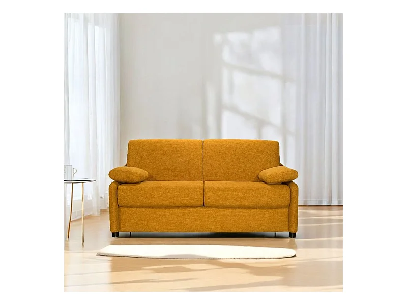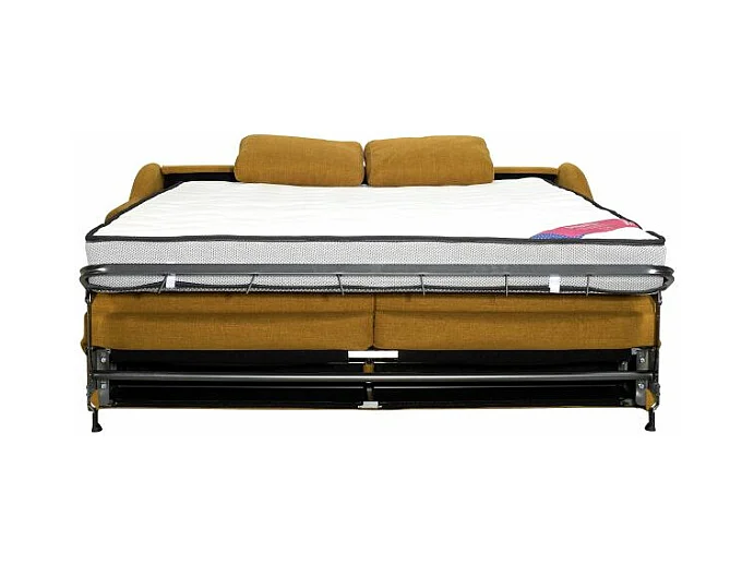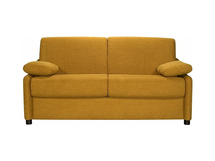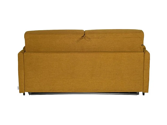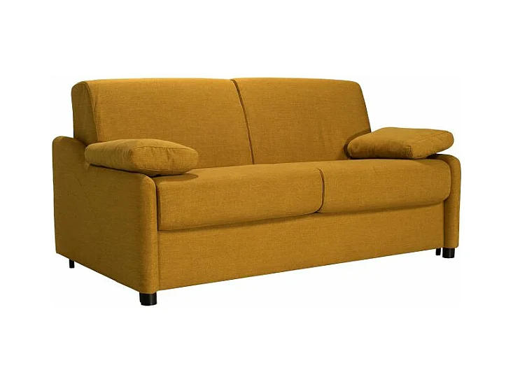 LINAS Canapé convertible 3 places jaune matelas Dunlopillo 140cm