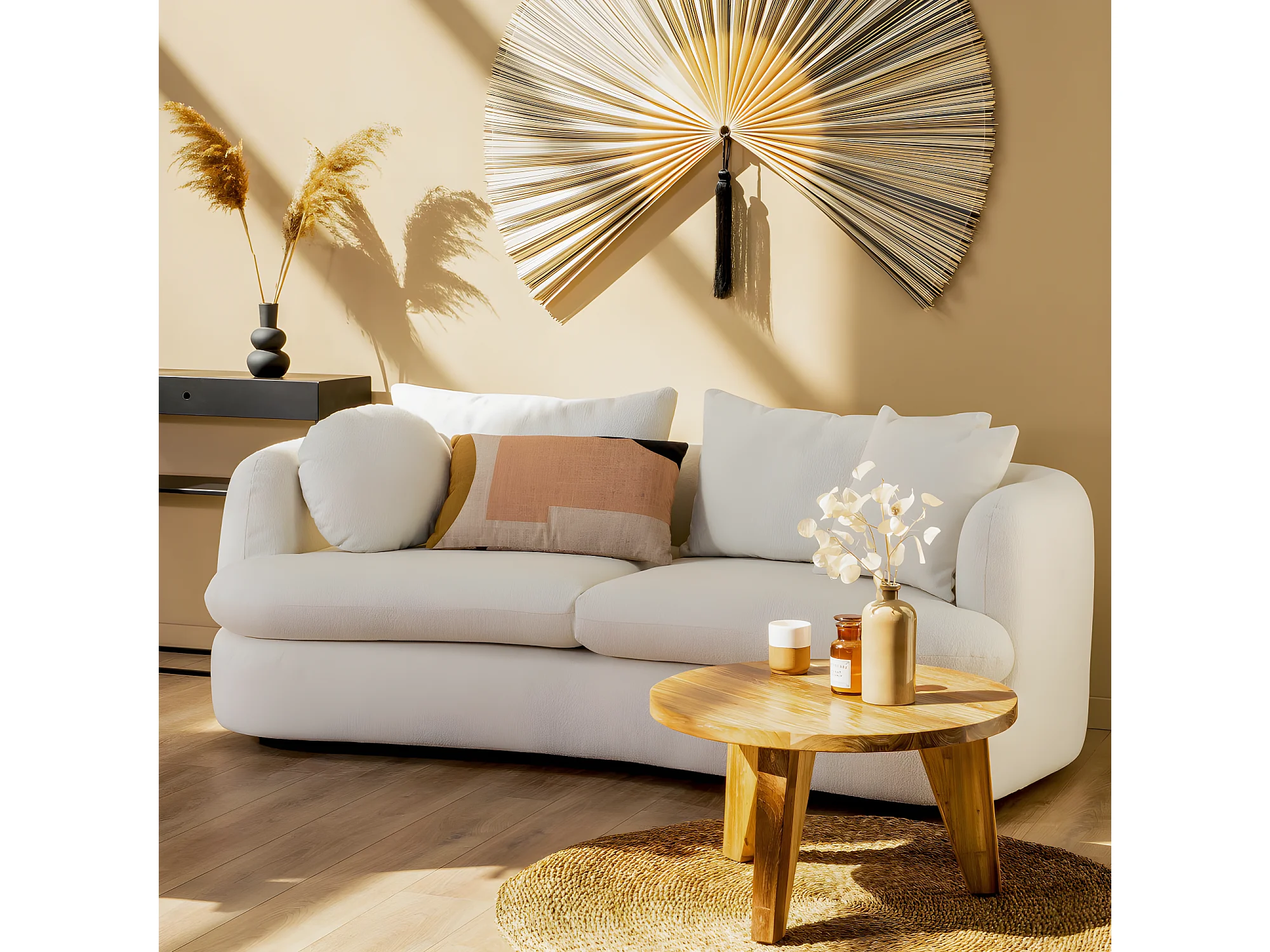 Lindos - Canapé 3 places en tissu bouclette : Couleur - Ecru