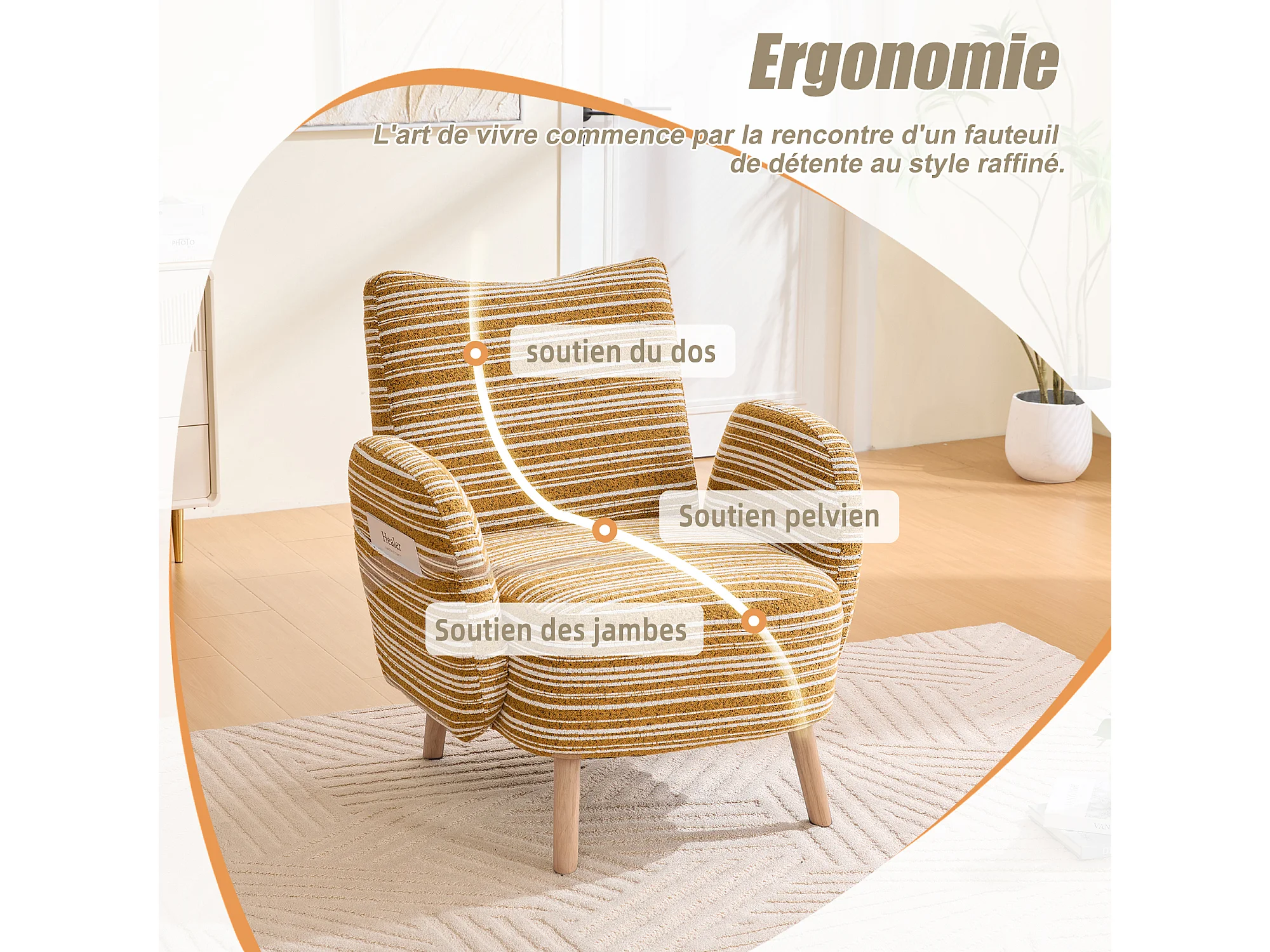 Linea 1.0 - Fauteuil Relax Bouclé avec Accoudoirs à Poches - Confort Ergonomique - Jaune - Pour décorer toute pièce
