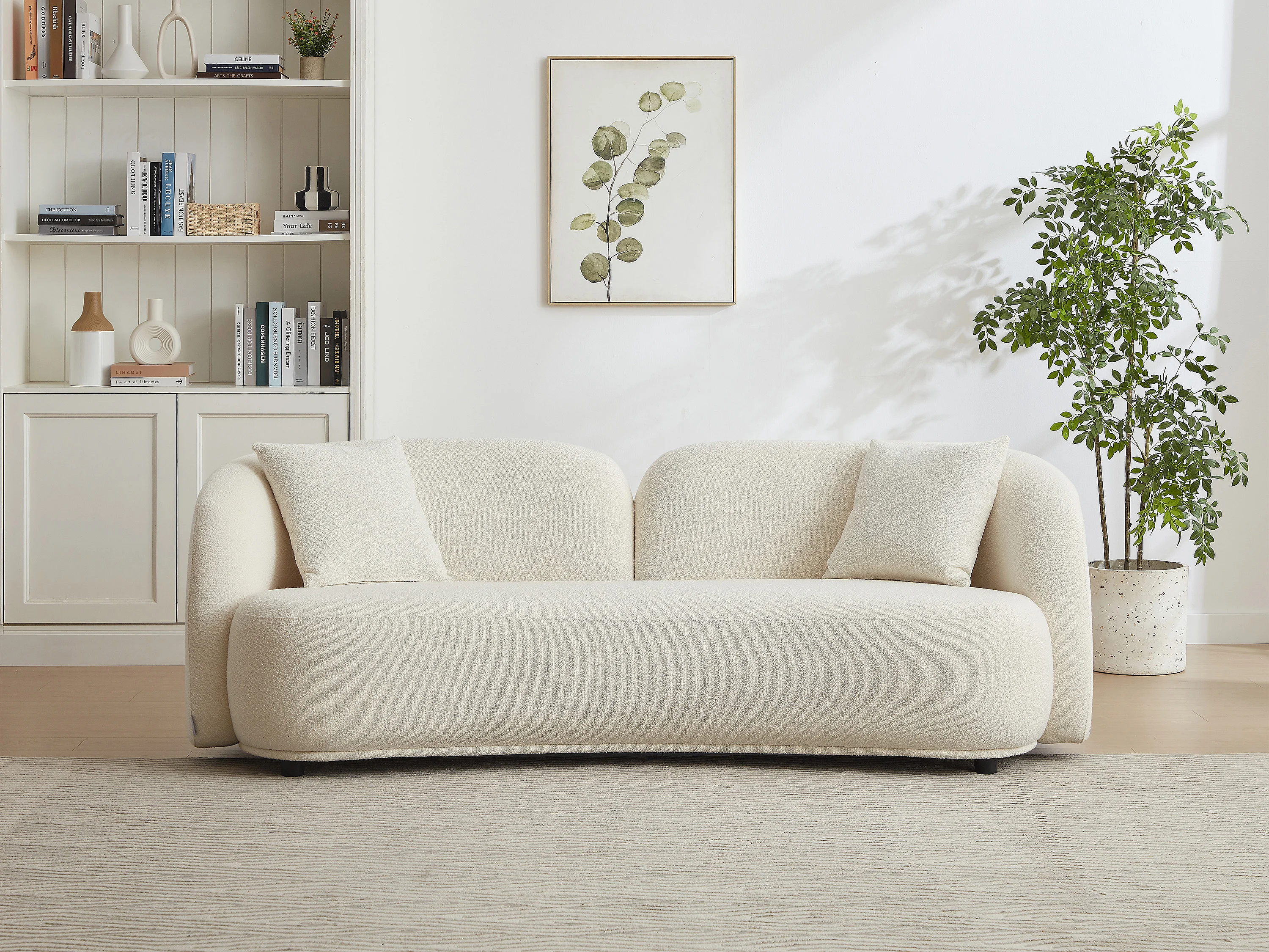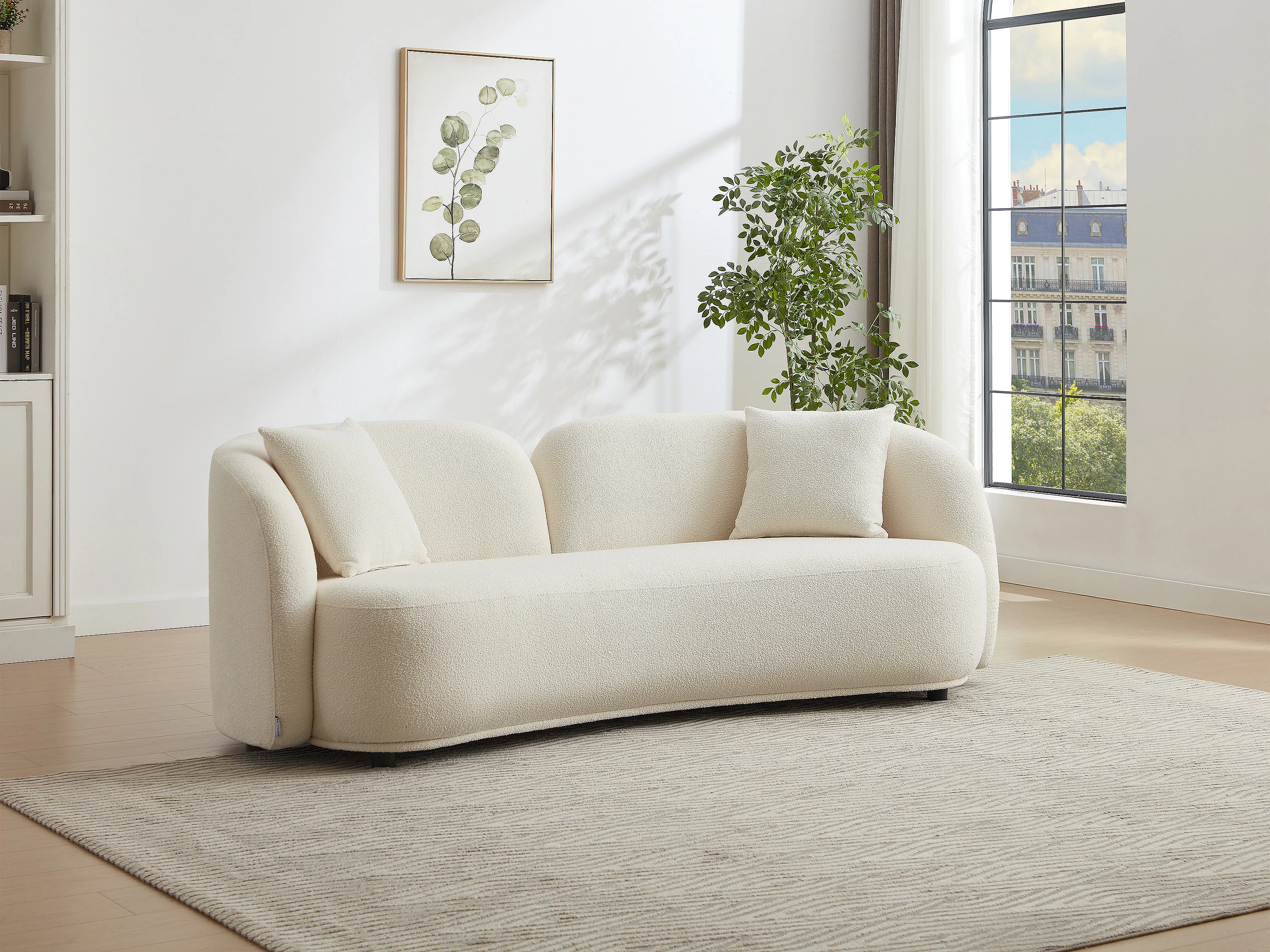 Canapé 3 places en tissu bouclette blanc LINORIA