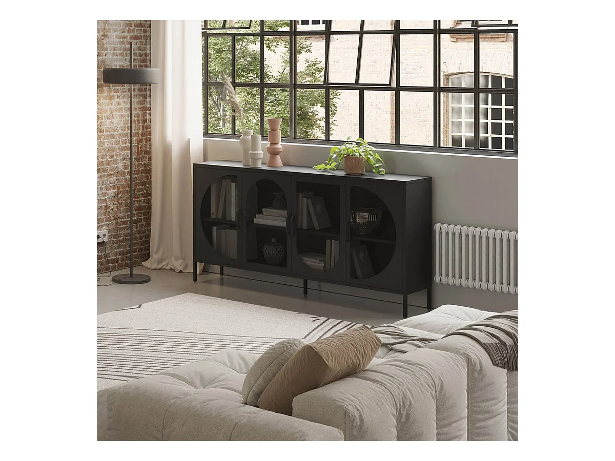 LIOVIA - Buffet 4 Portes Ajourées en Métal Noir
