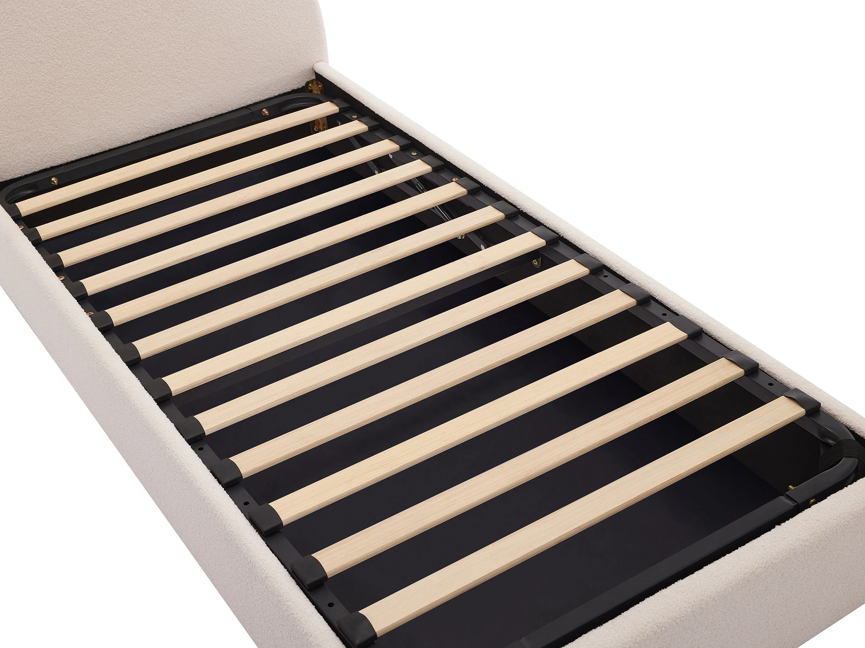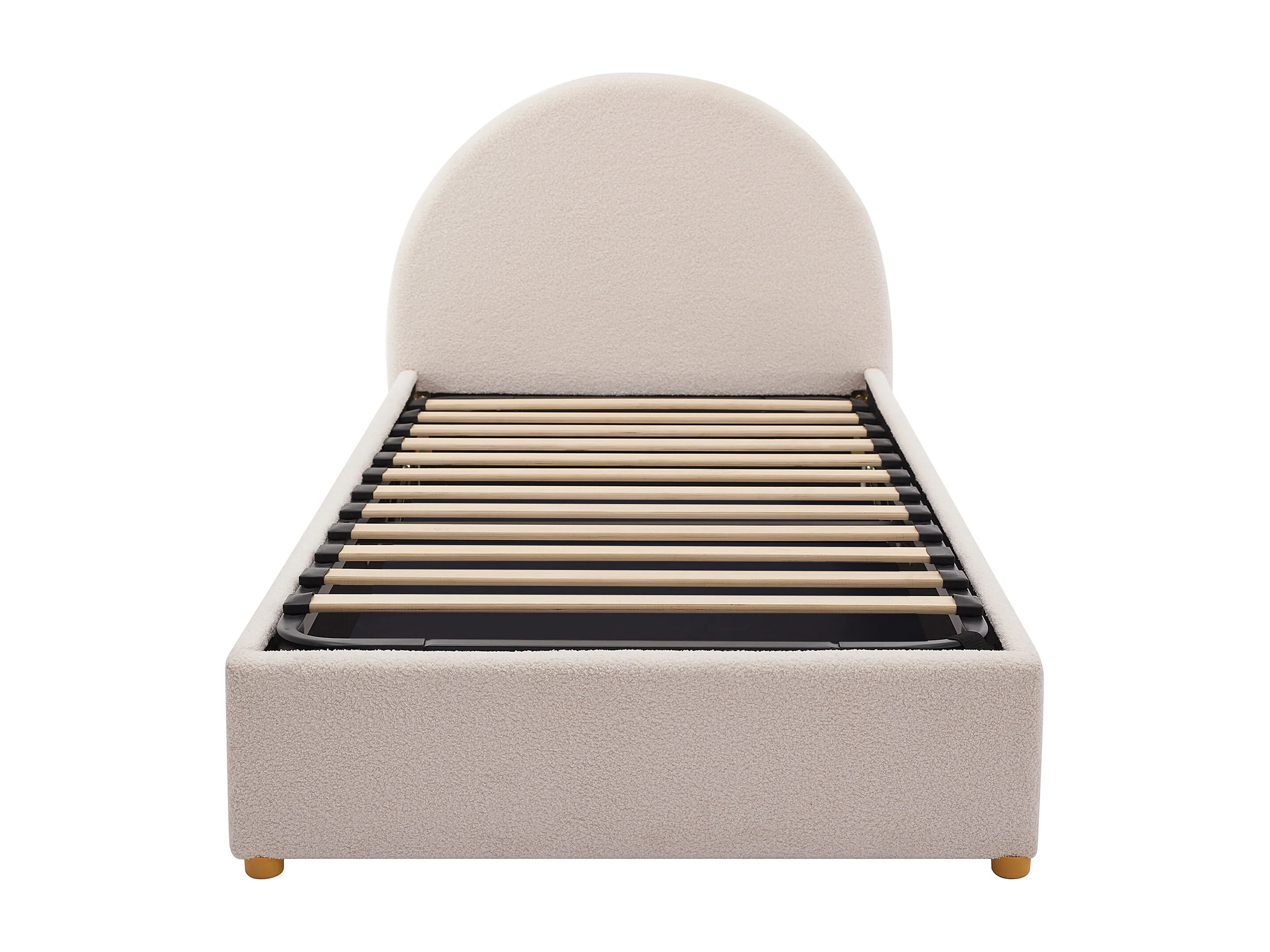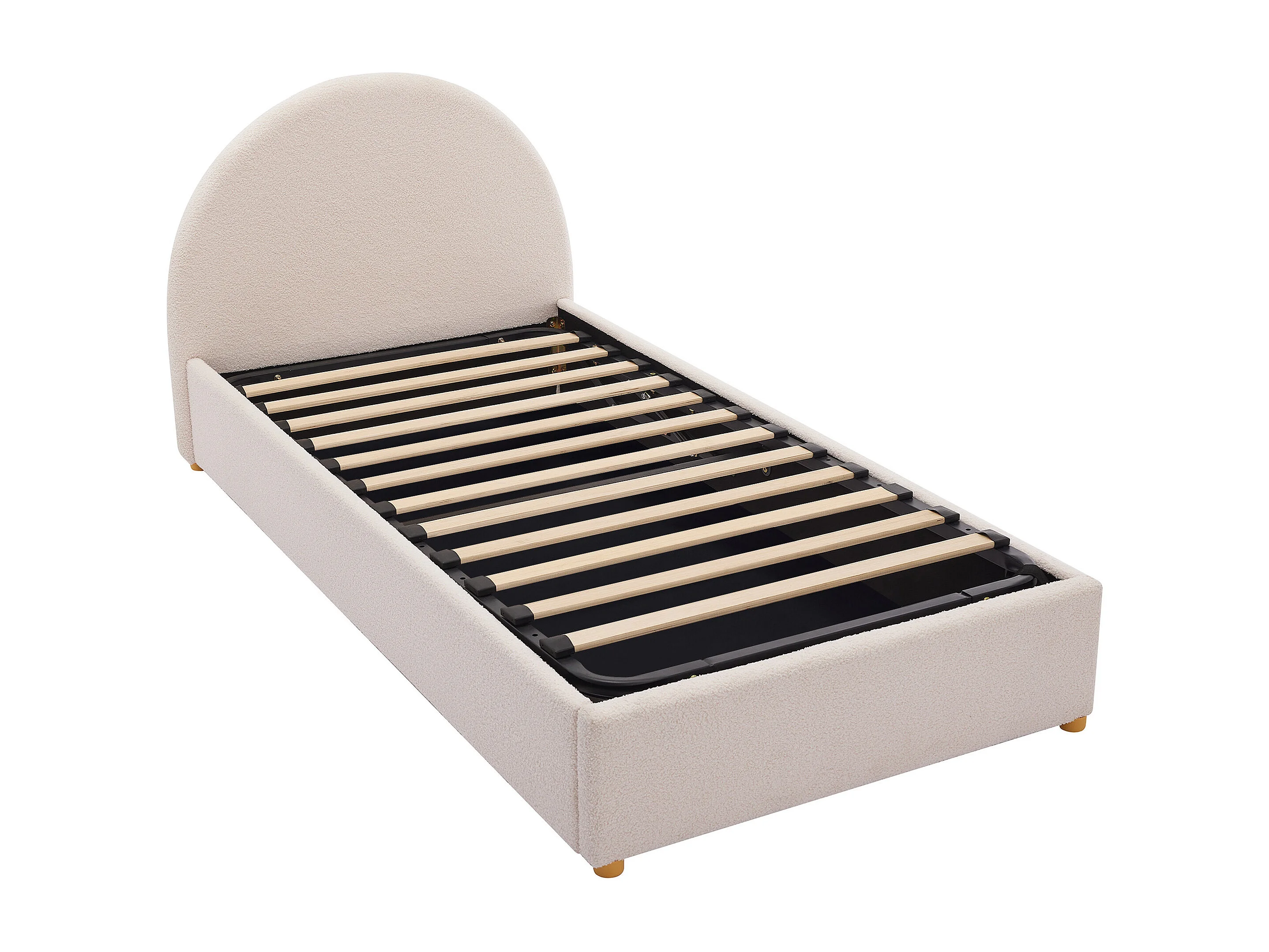 Lit coffre 90 x 200 cm - Tissu bouclette - Crème + Matelas - LIRIMO