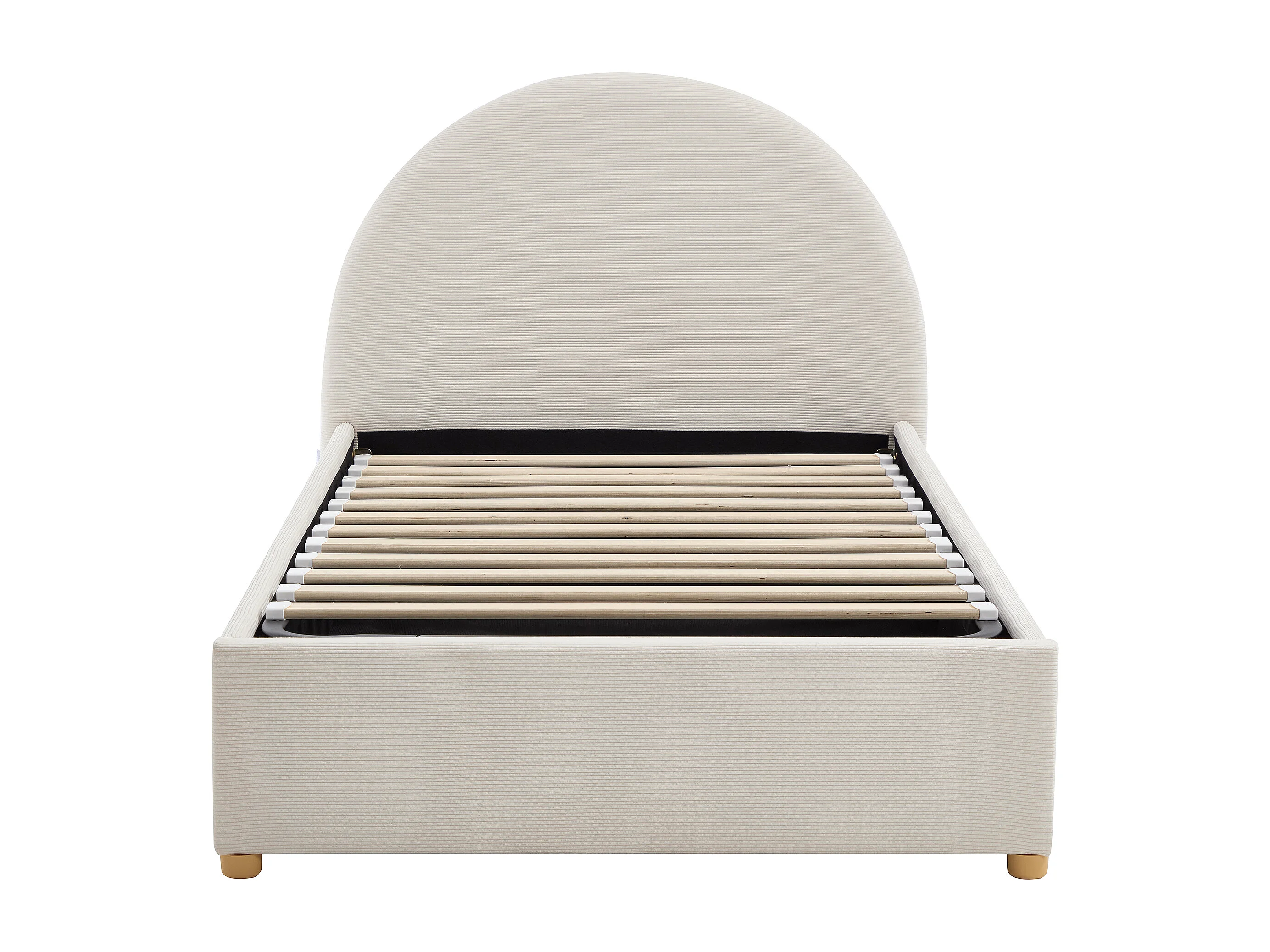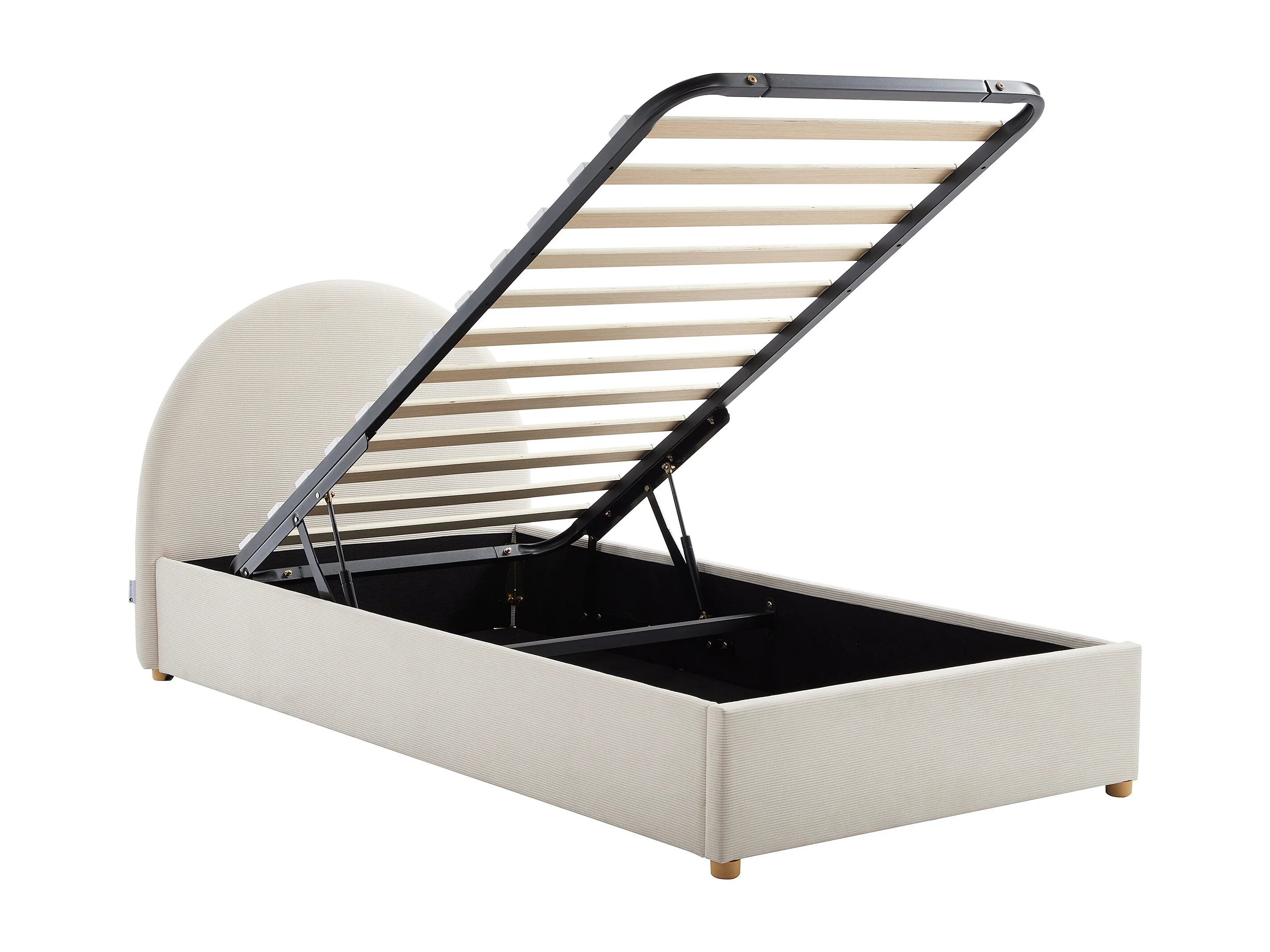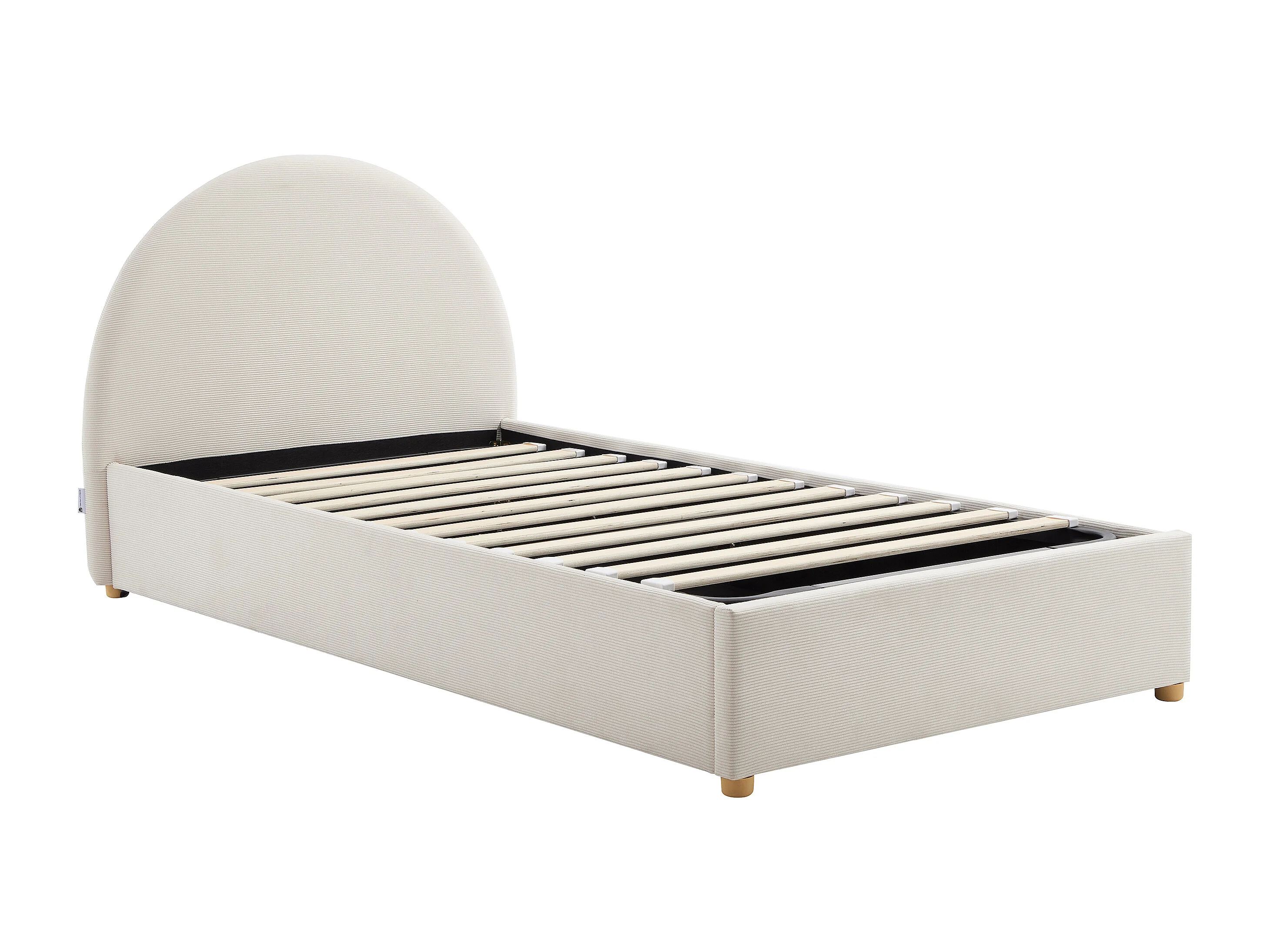 Lit coffre 90 x 200 cm - Velours côtelé - Beige + Matelas - LIRIMO