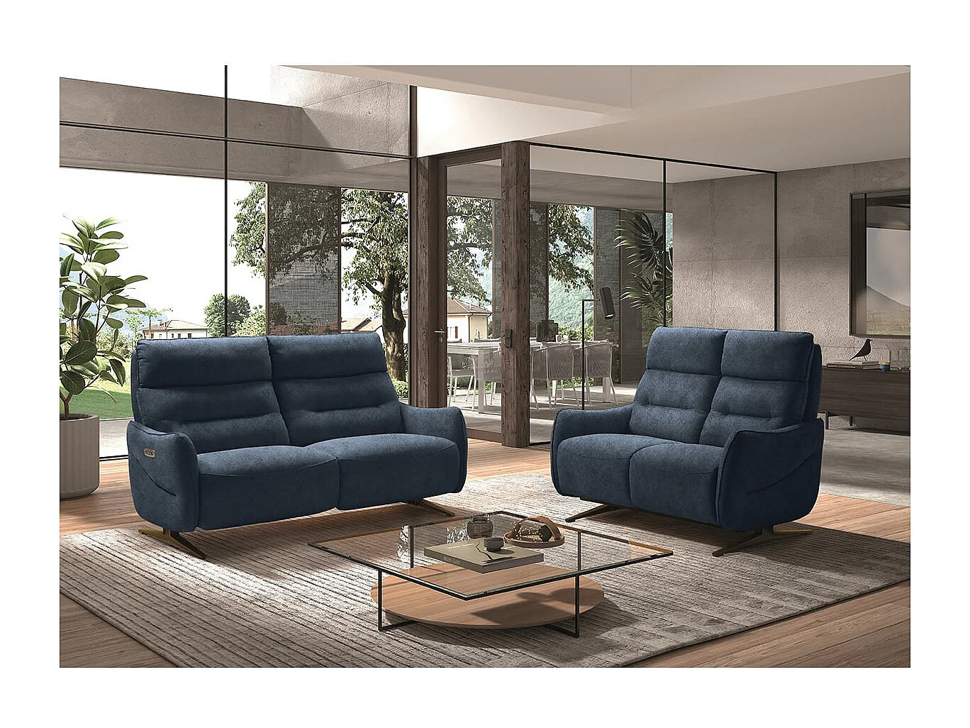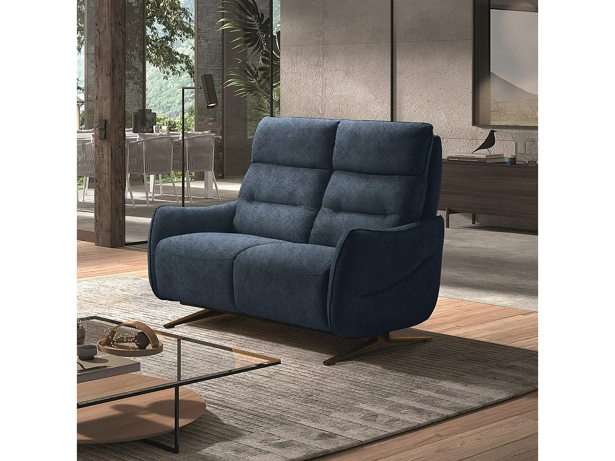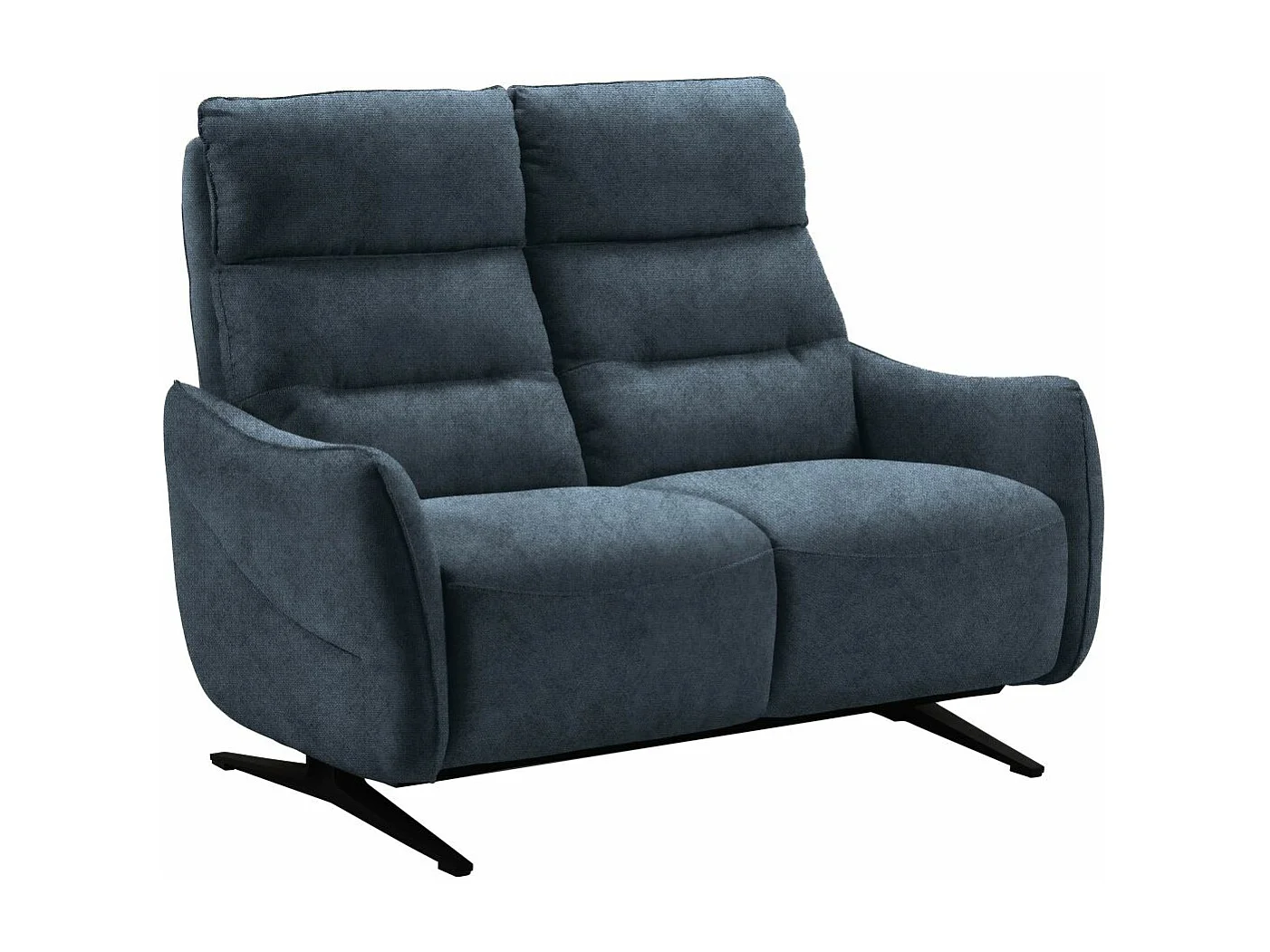LISBOA - Canapé Fixe 2 Places Tissu Bleu Pieds Métal