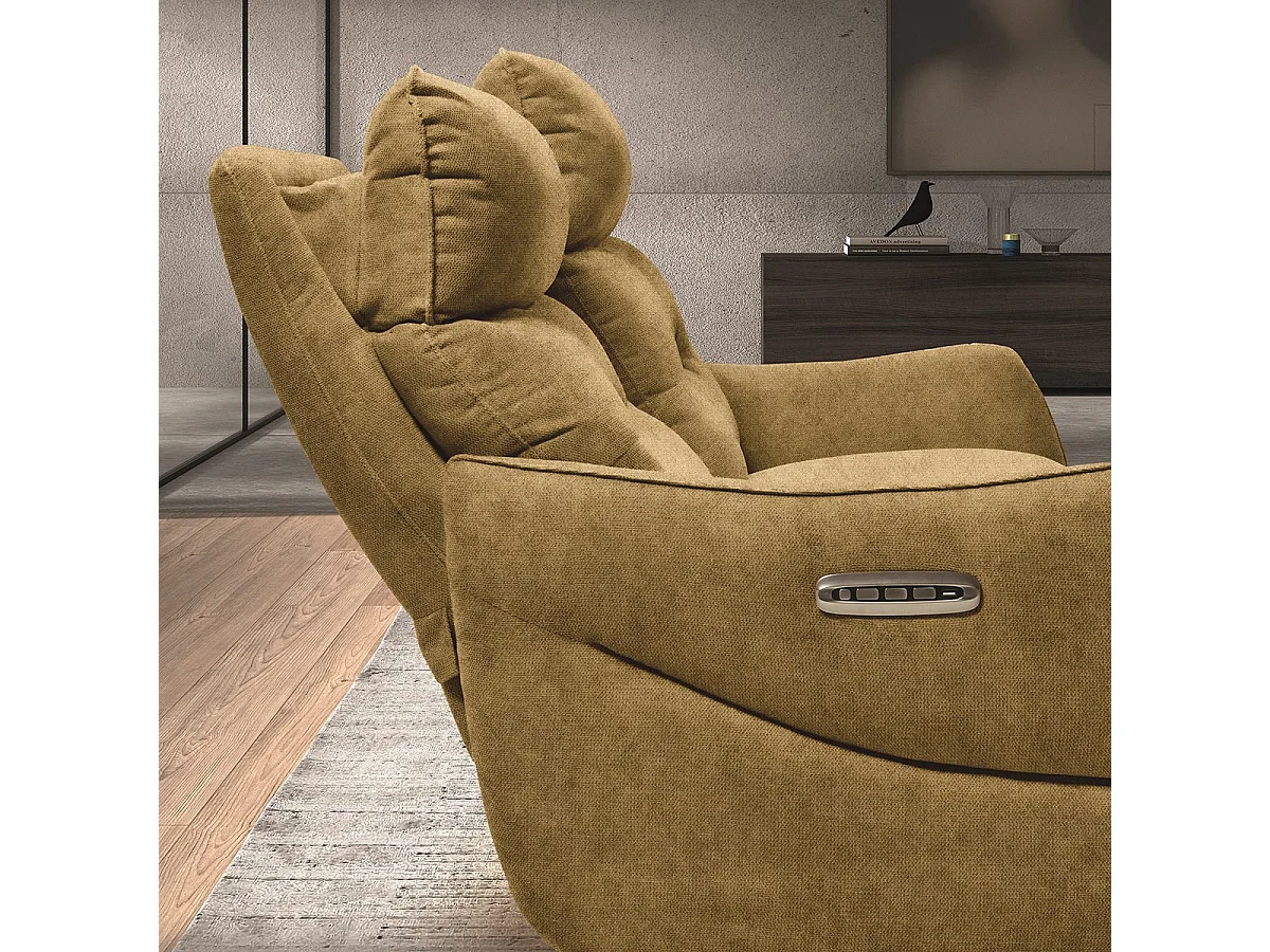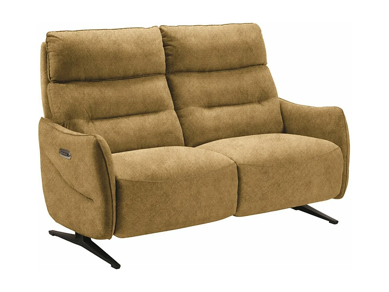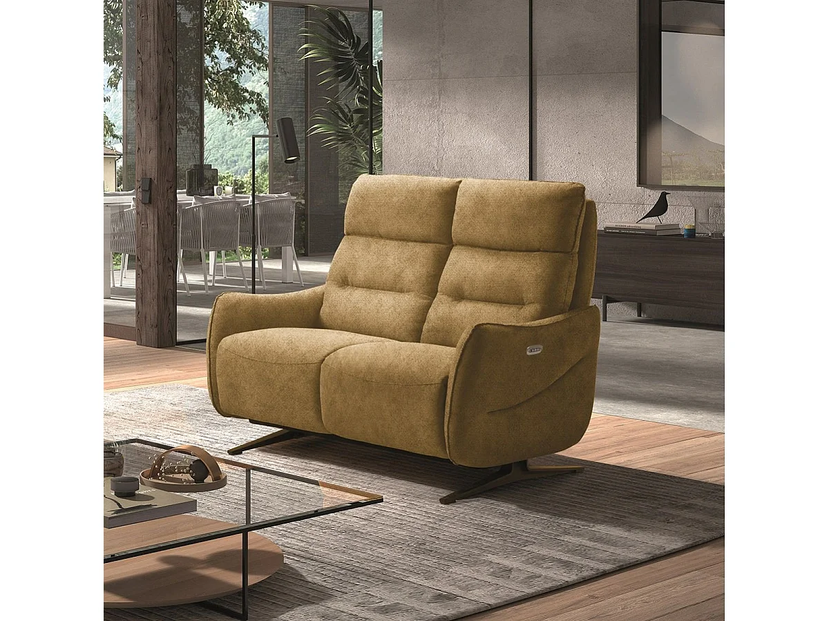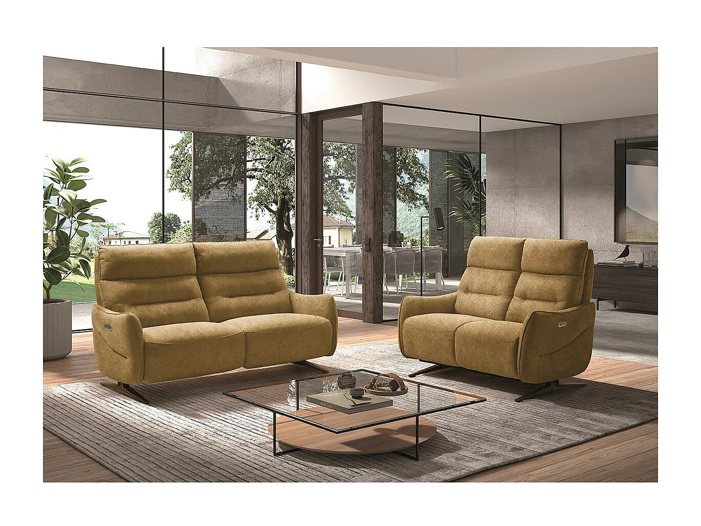 LISBOA - Canapé Relax Electrique 2 Places Tissu Jaune Pieds Métal