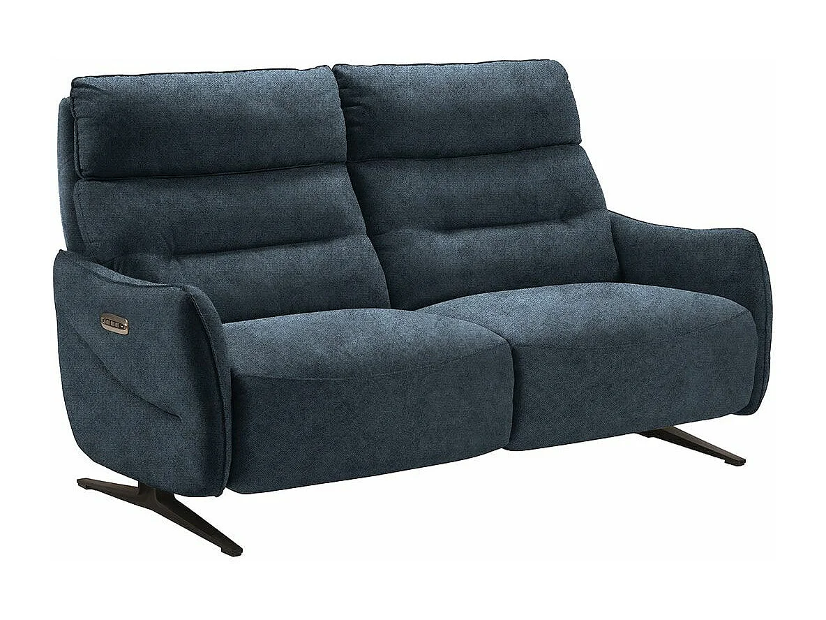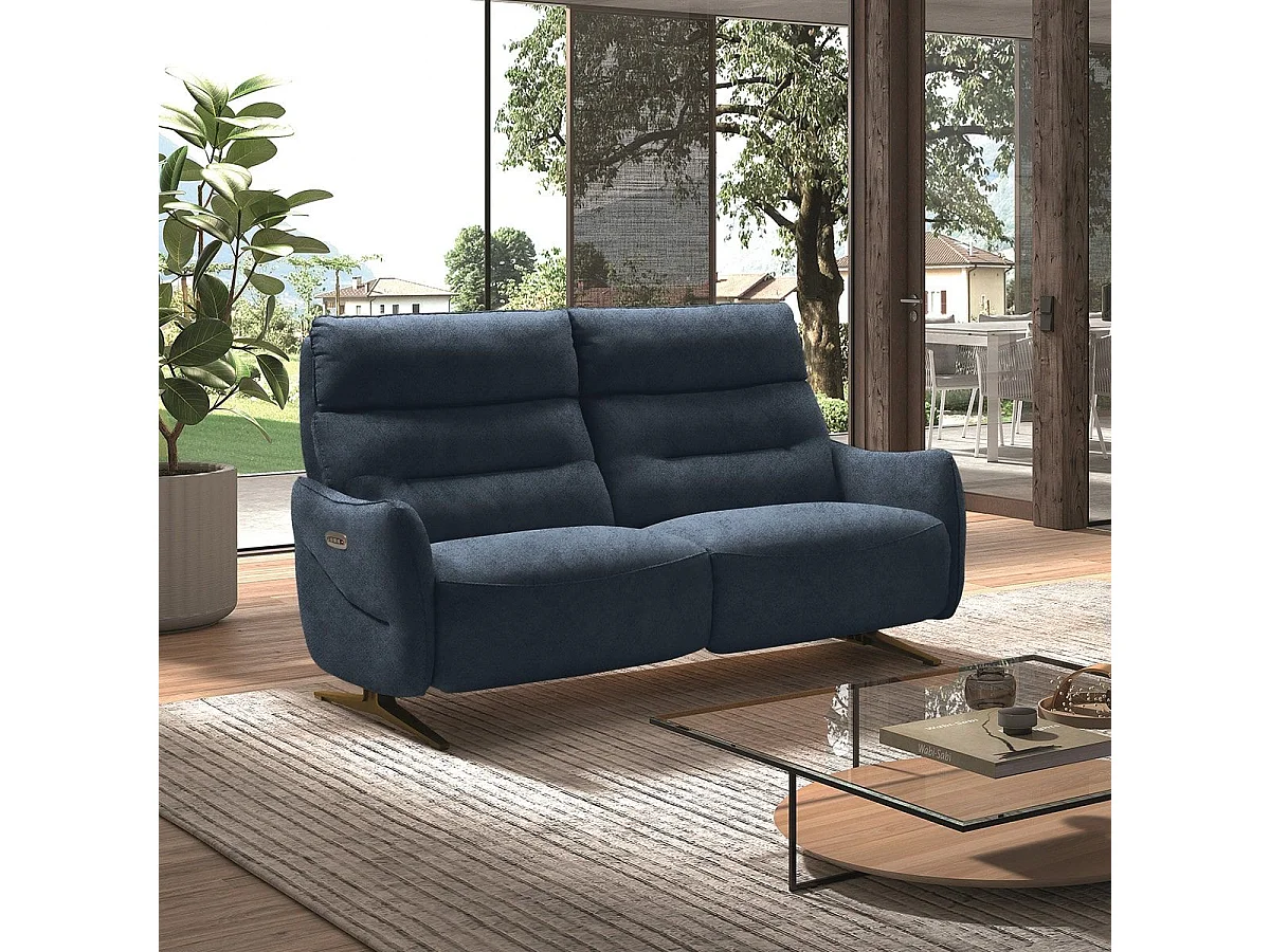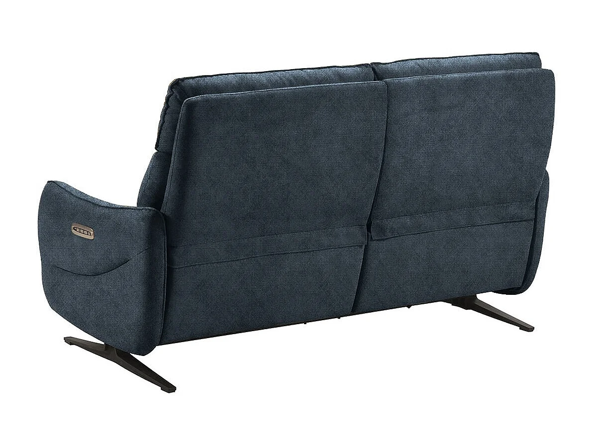 LISBOA - Canapé Relax Electrique 3 Places Tissu Bleu Pieds Métal