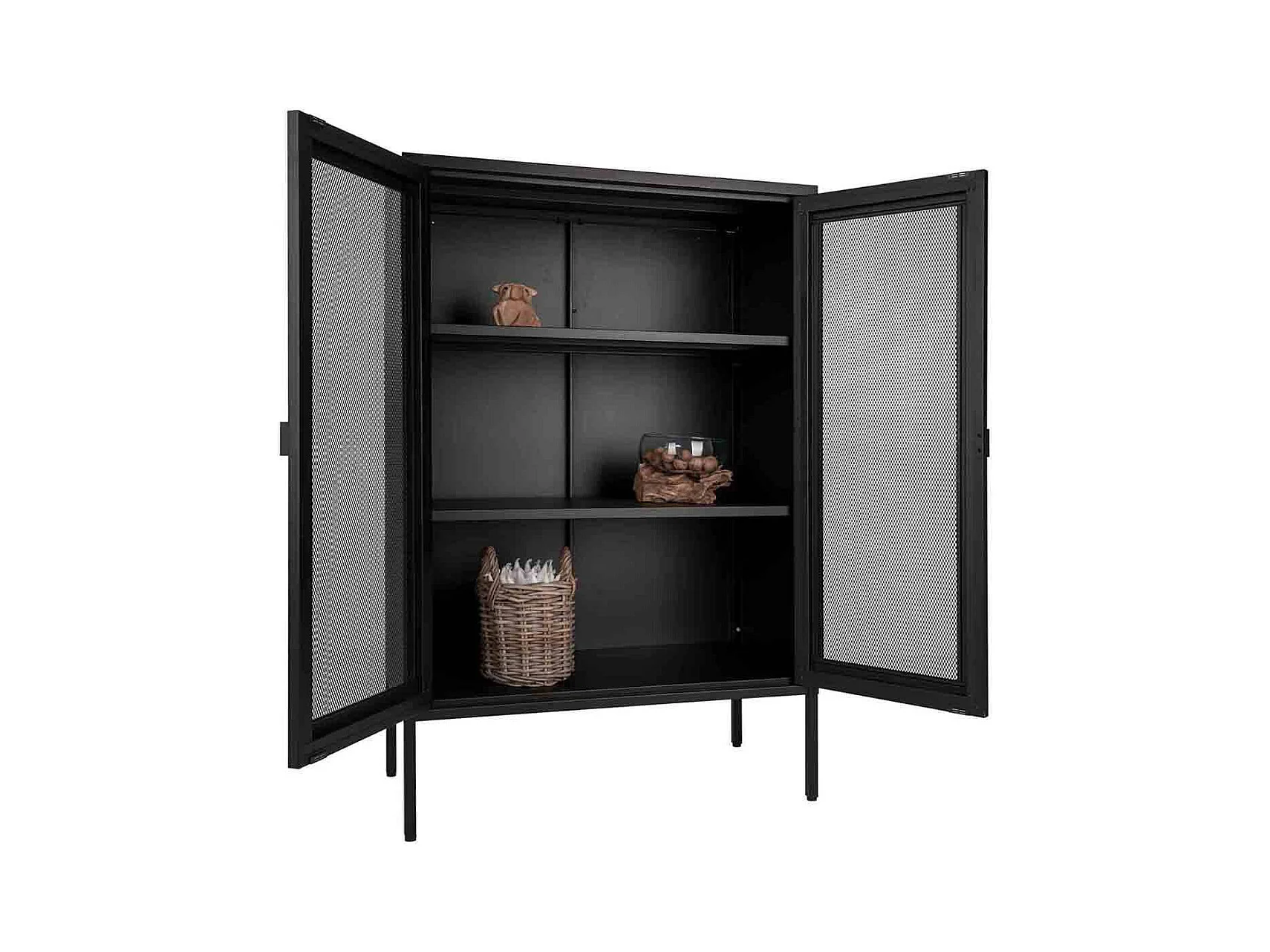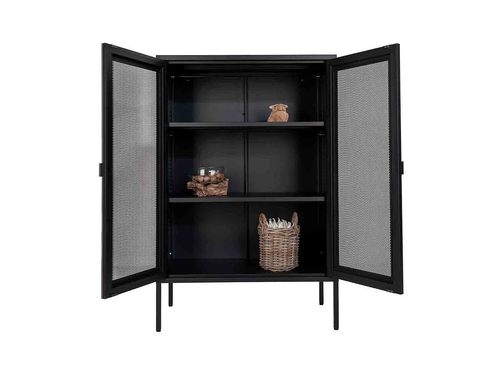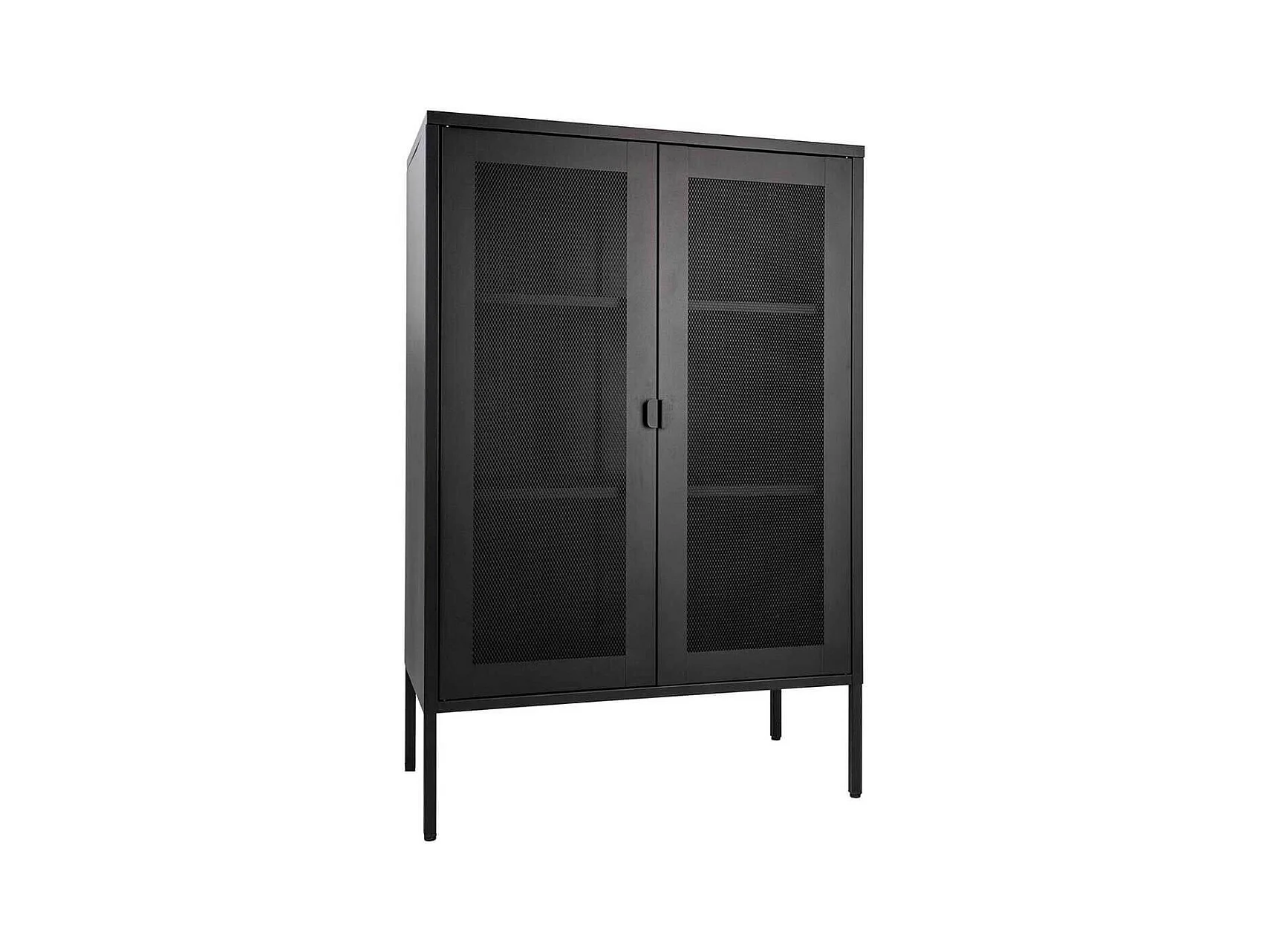 LISMORE - Meuble de Rangement 2 Portes Grillagées Acier Noir