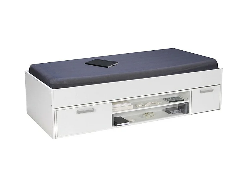 Lit 1 place 90x200cm avec rangement incl. chevet et étagère
