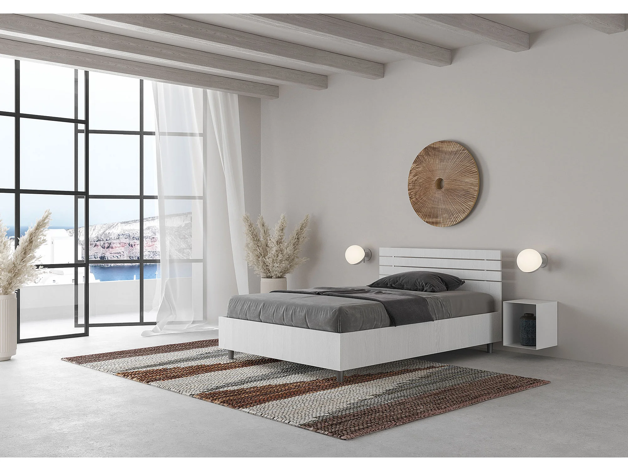 Lit 1 place et demi coffre 120x190 tête de lit droite avec des lames frêne blanc Ankel