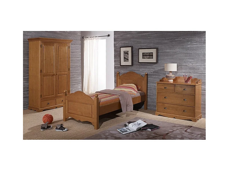 Lit 1 Place Pour Couchage 90 x 190 Pin Miel Style Anglais L 99 H 100 P 198 cm