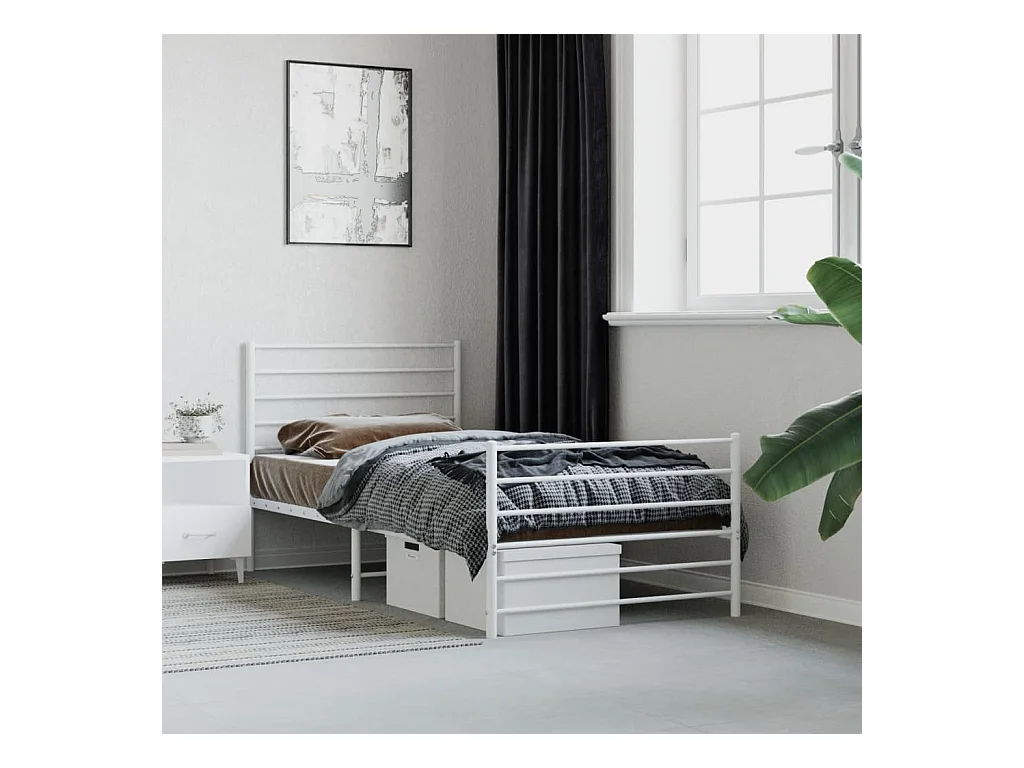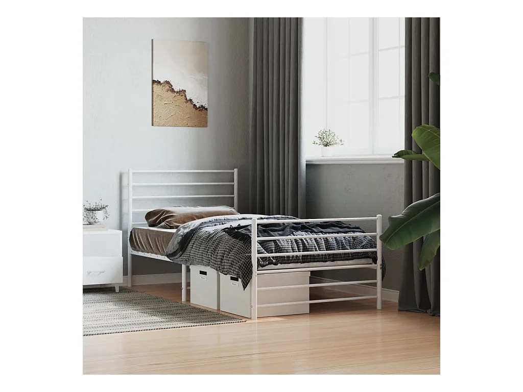 Lit-107x203 cm métal avec tête de lit/pied de lit blanc EGGB80066