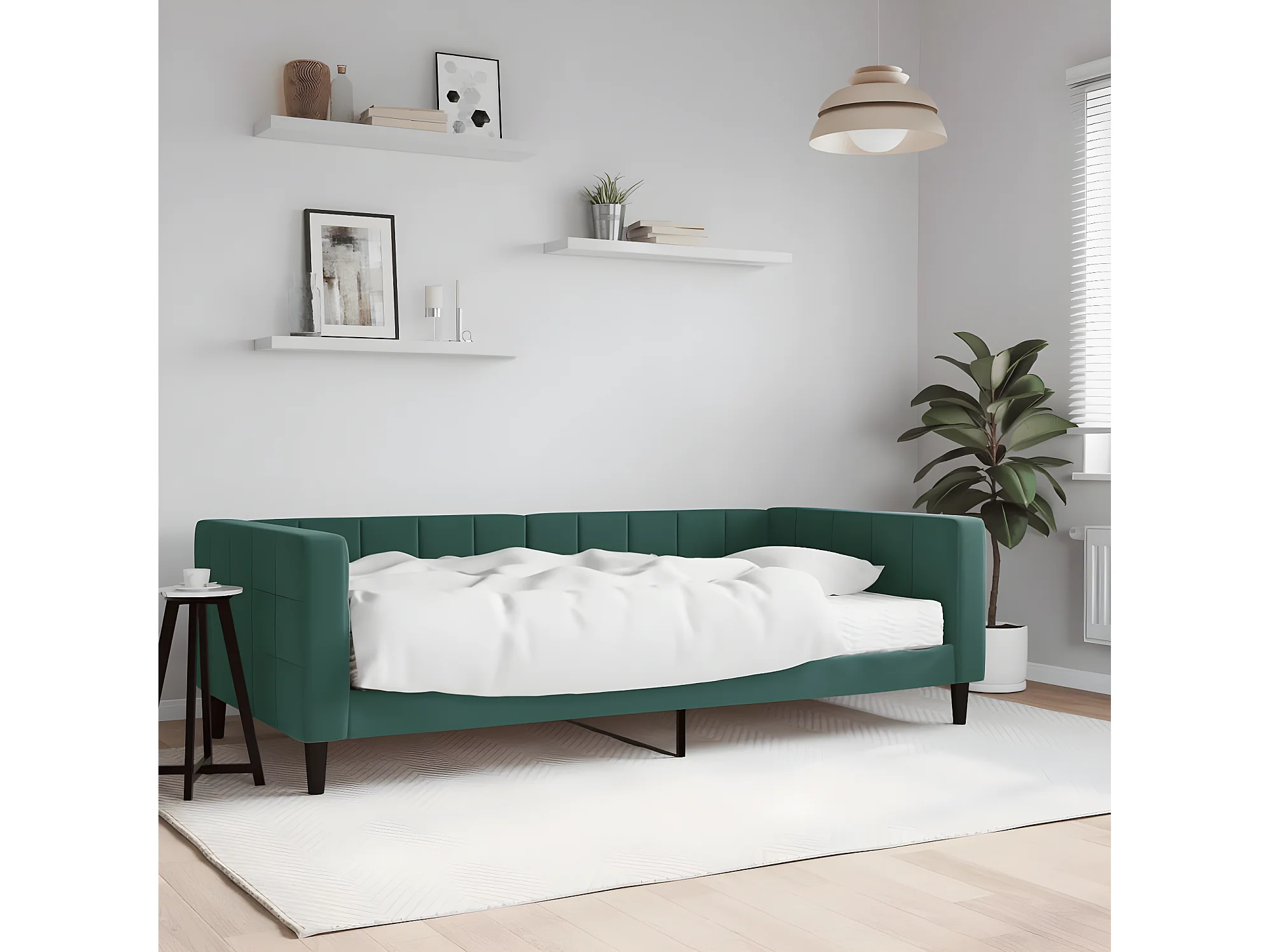 Lit - 100x200 cm avec matelas vert foncé velours ASW88228