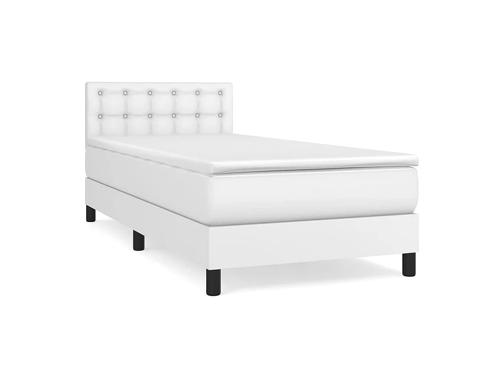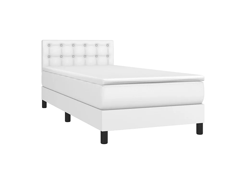 Ensemble complet boxspring - 100x200 cm + sommier tapissier + matelas Blanc Similicuir SRGW63620