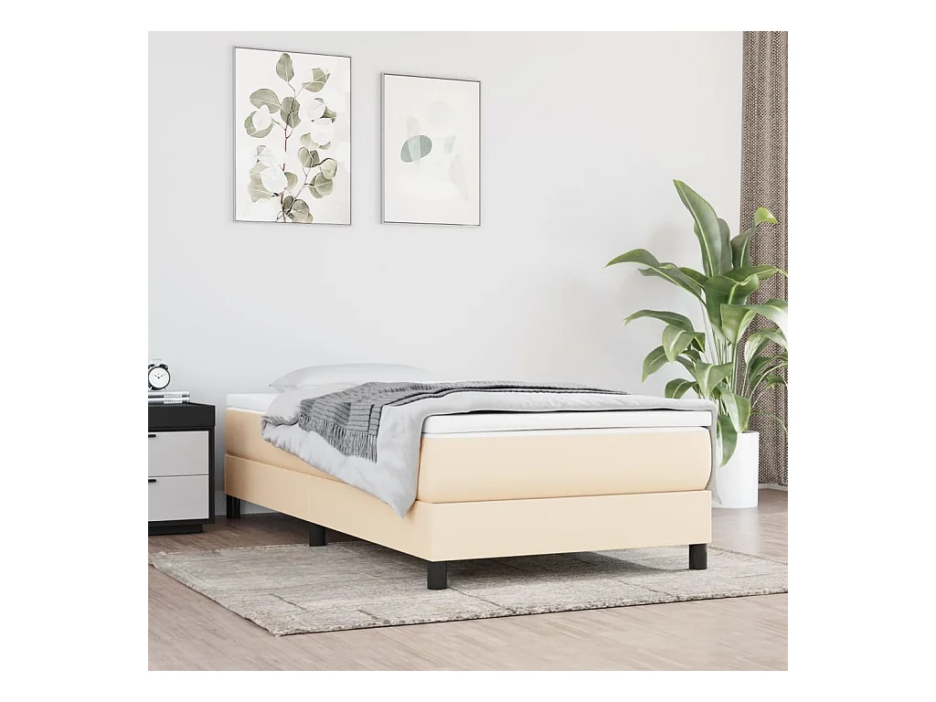 Ensemble complet boxspring - 100x200 cm + sommier tapissier + matelas Crème Tissu SRGW69590