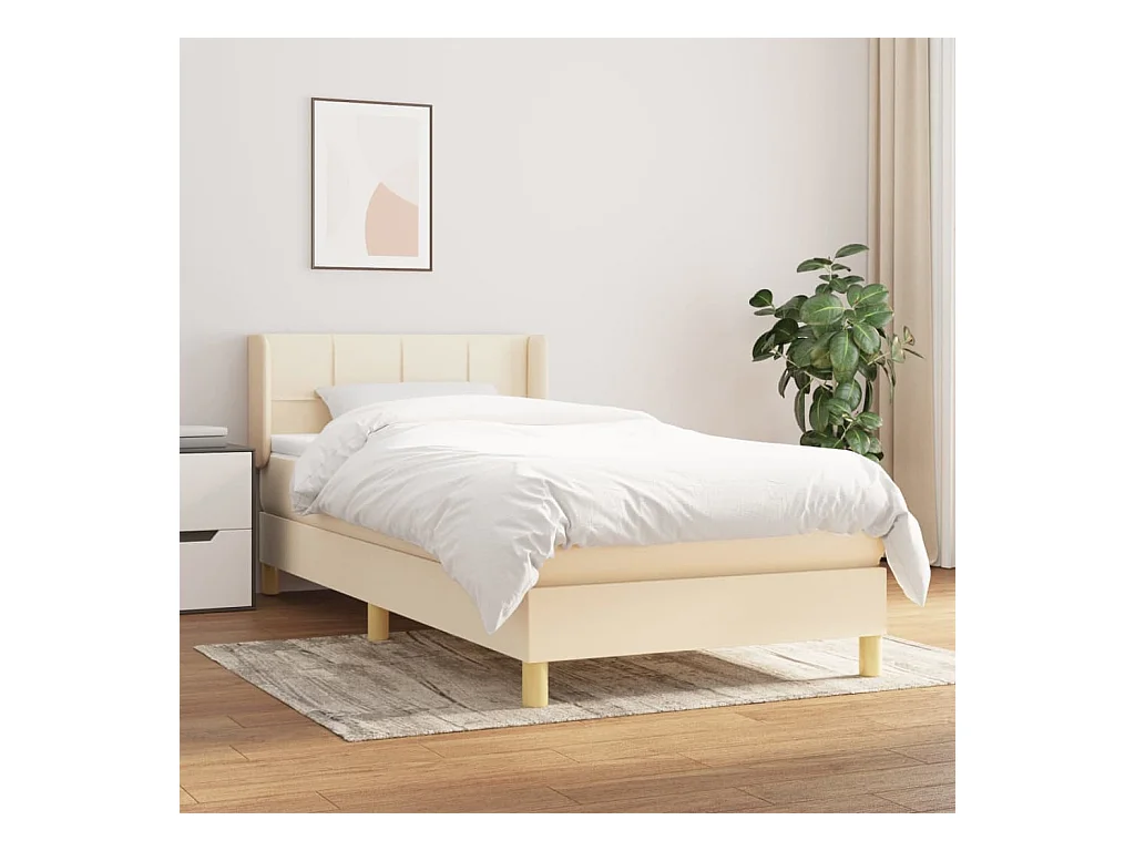 Ensemble complet boxspring - 100x200 cm + sommier tapissier + matelas Crème Tissu SRGW91070