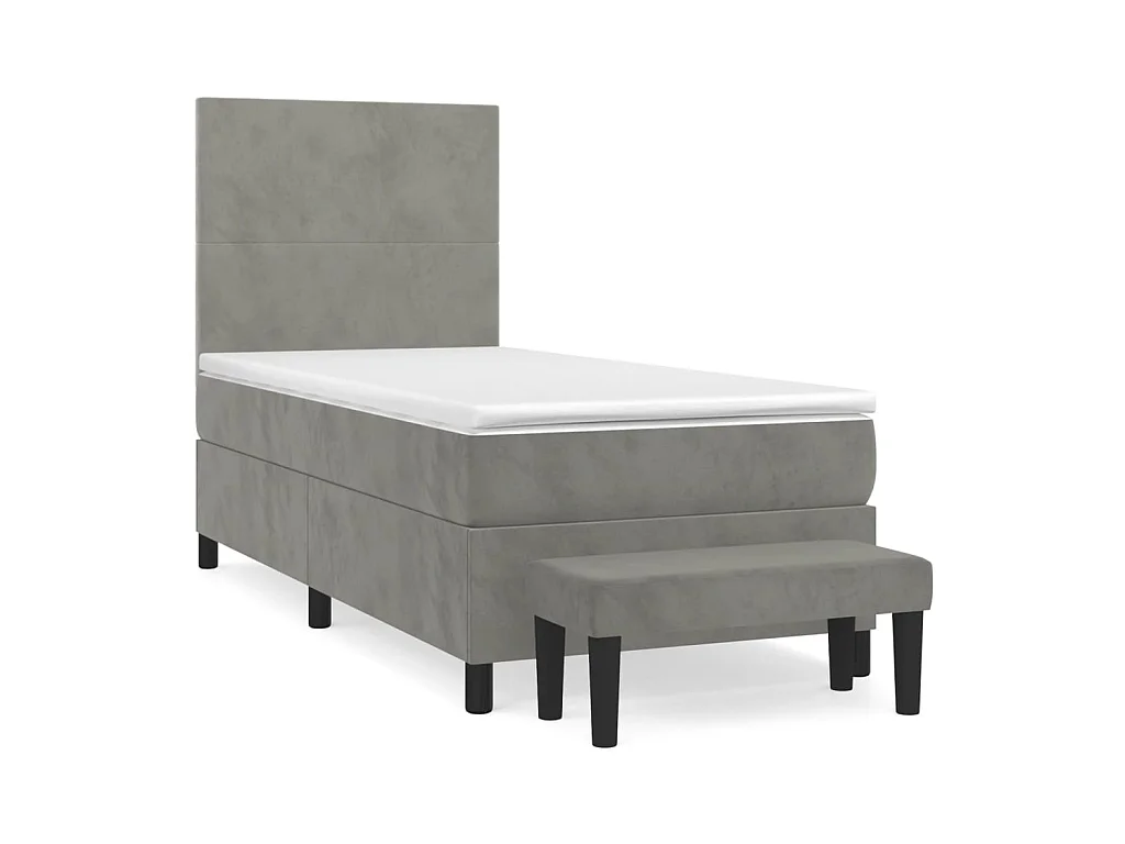 Ensemble complet boxspring - 100x200 cm + sommier tapissier + matelas Gris clair Velours SRGW96892