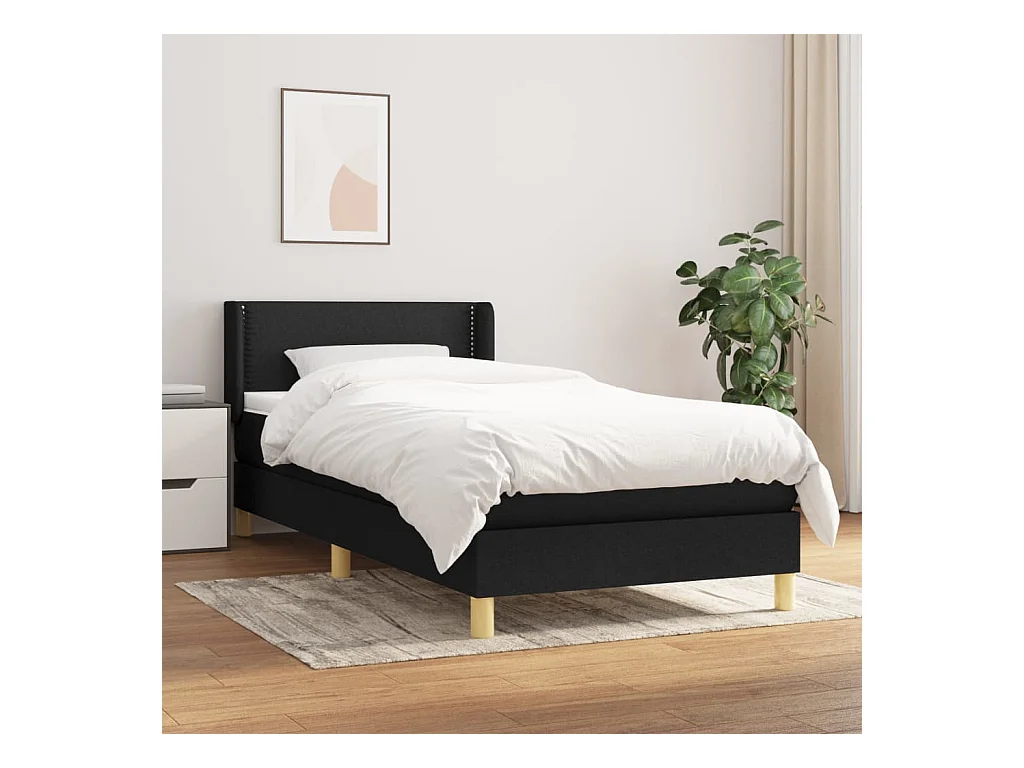 Ensemble complet boxspring - 100x200 cm + sommier tapissier + matelas Noir Tissu SRGW33718