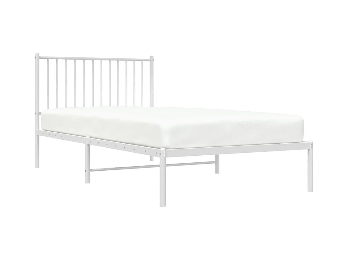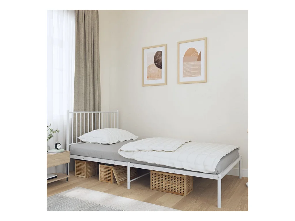 Lit simple métal + tête de lit/pied de lit blanc 100x200cm FR36276