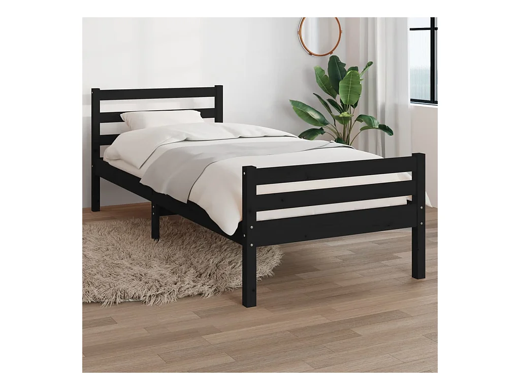 Lit-100x200 cm Noir Bois de pin massif EGGB84477