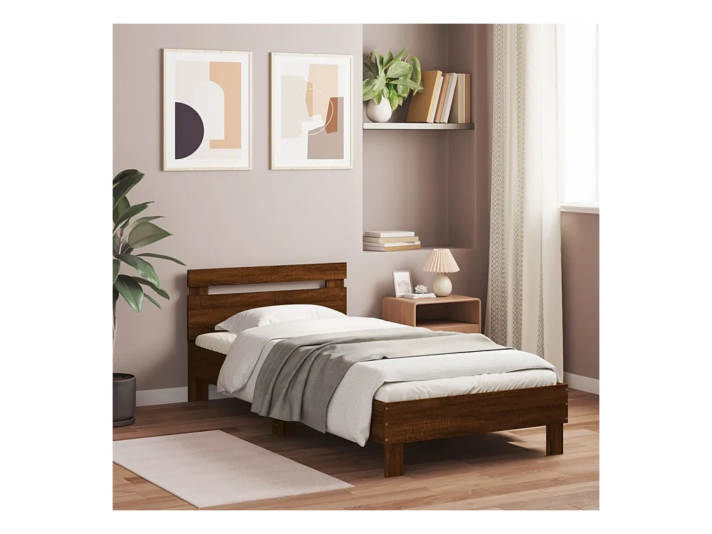 Cadre de lit tête de lit et lumières LED chêne marron 100x200