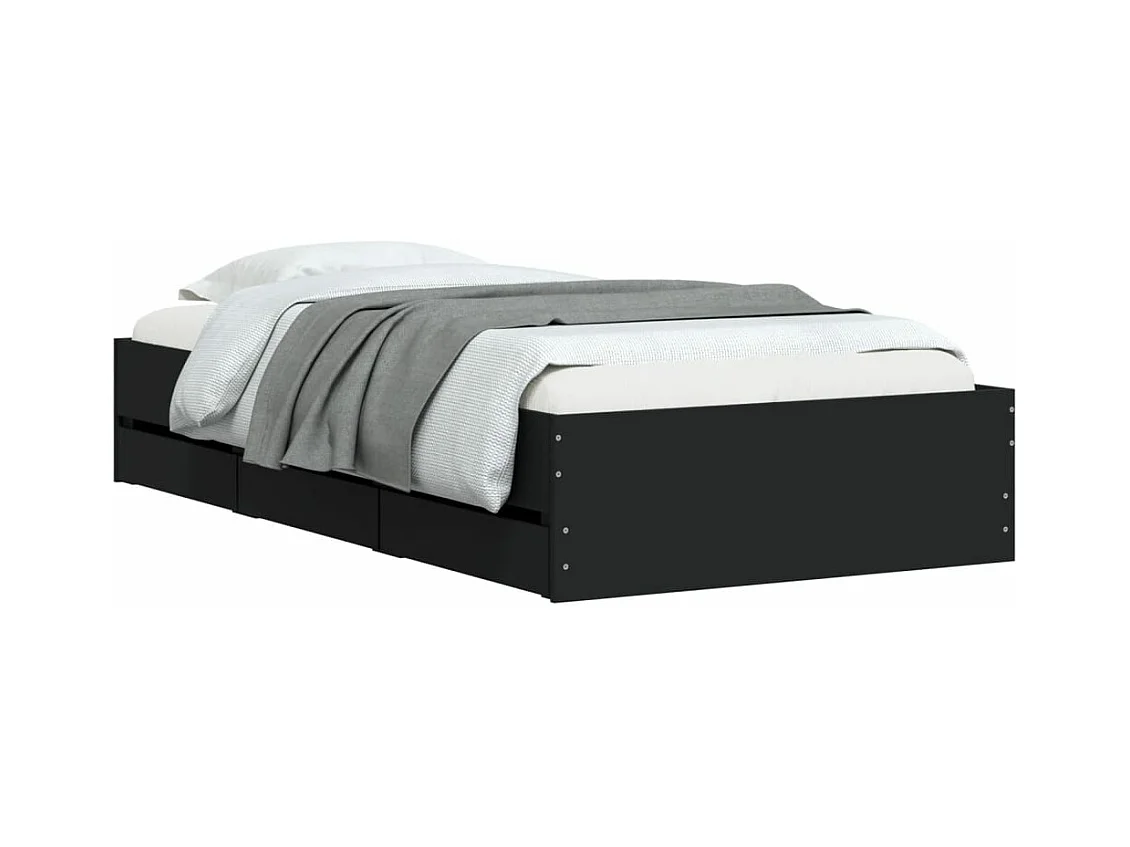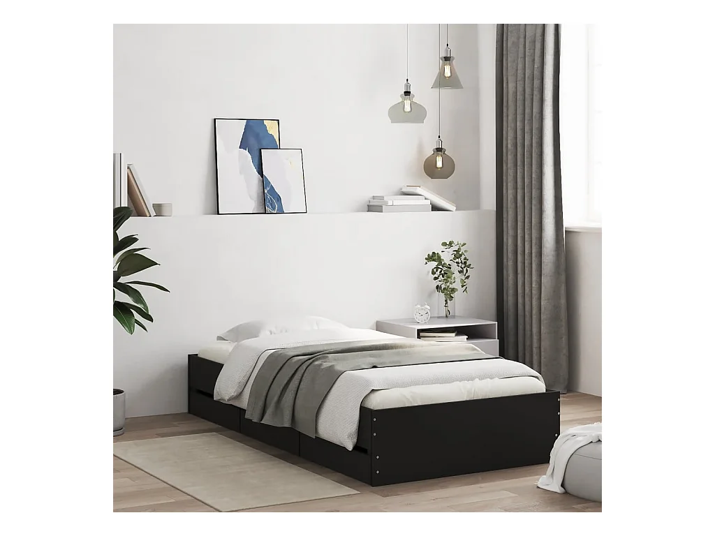 Lit-100x200 cm + tiroirs noir bois d'ingénierie HOQW36815