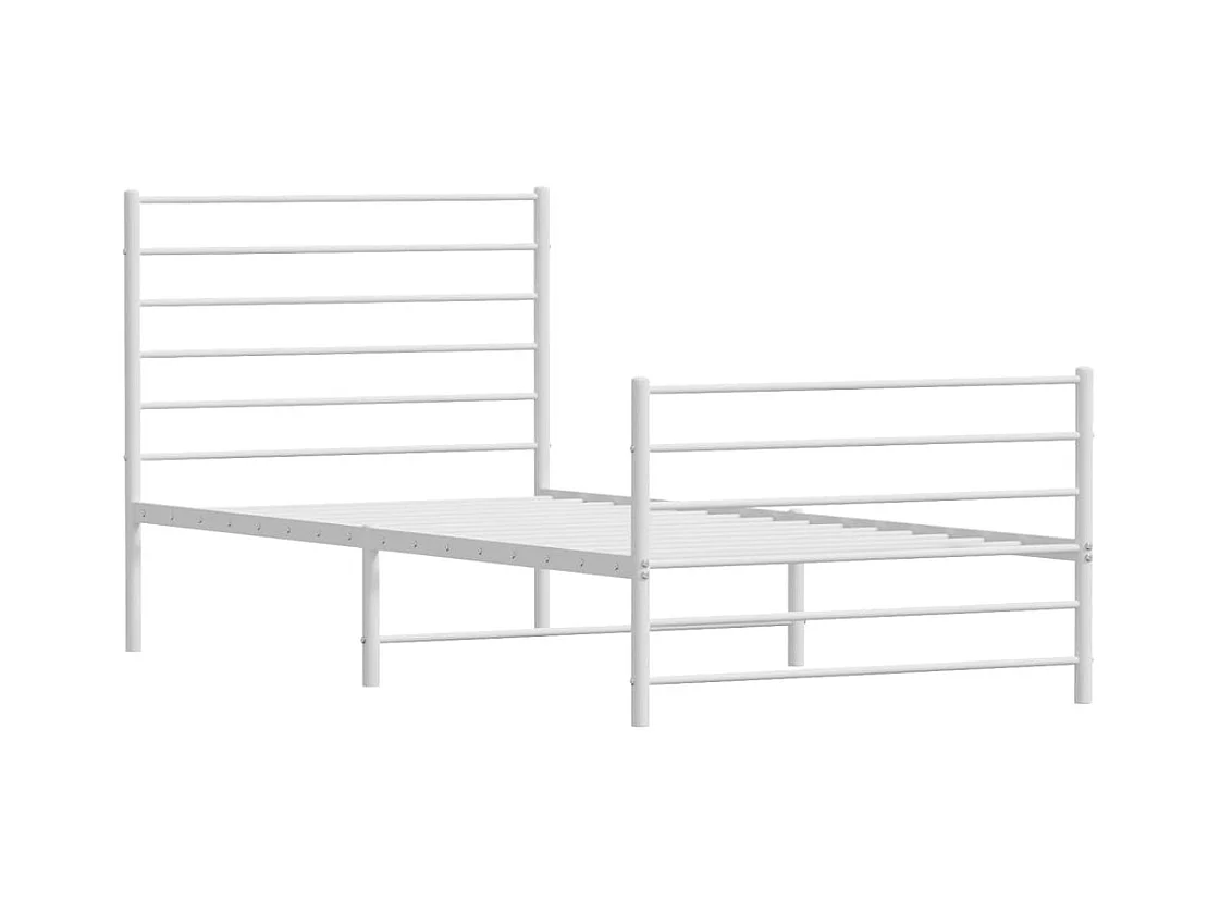 Lit simple métal + tête de lit/pied de lit blanc 100x200cm FR24377