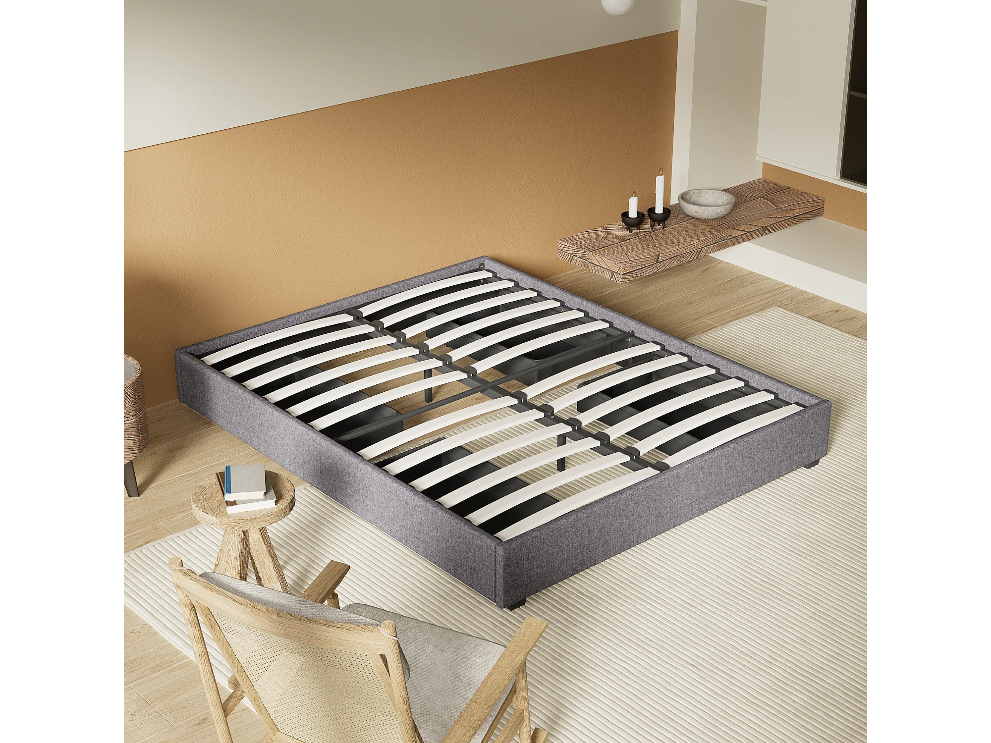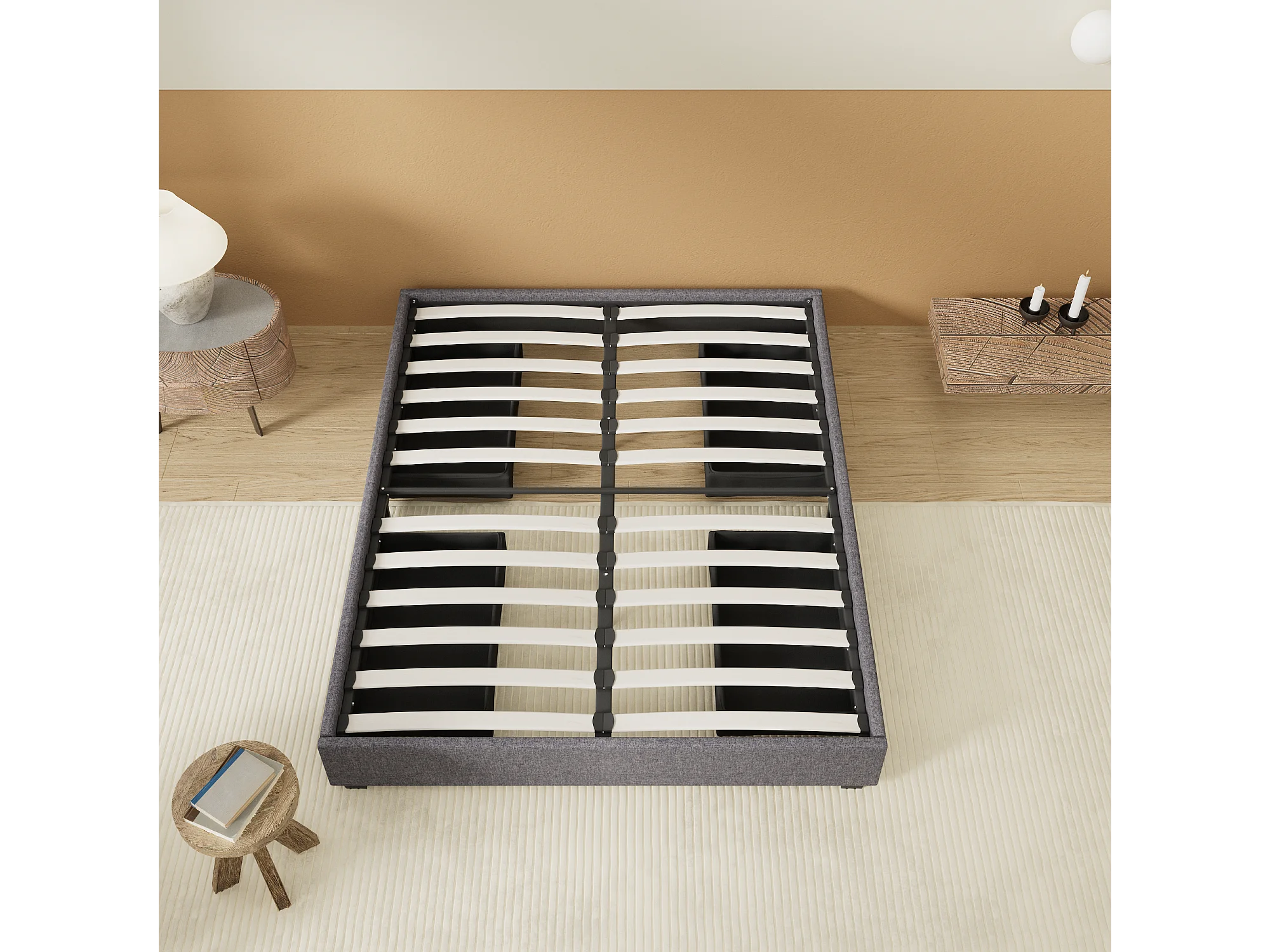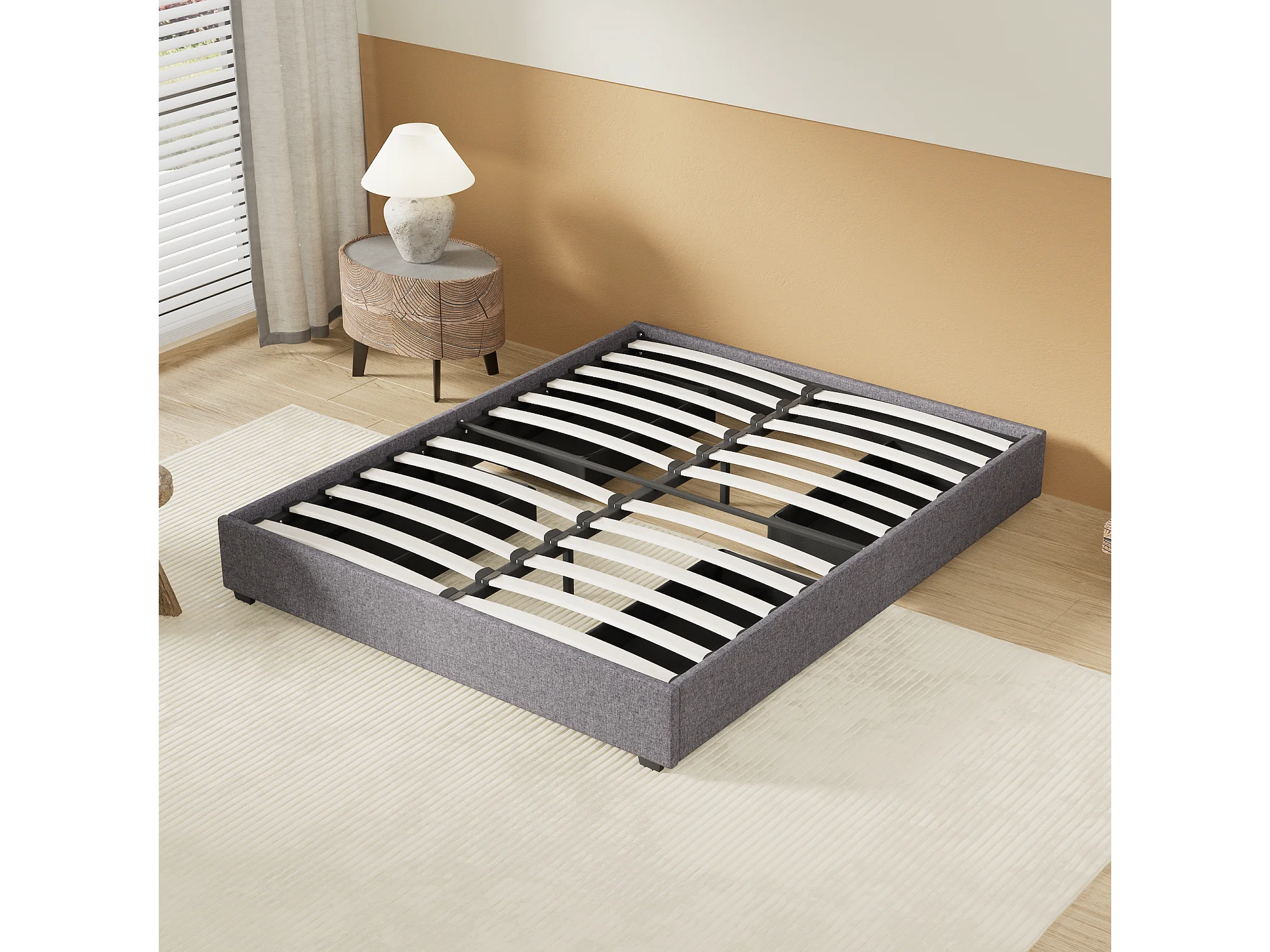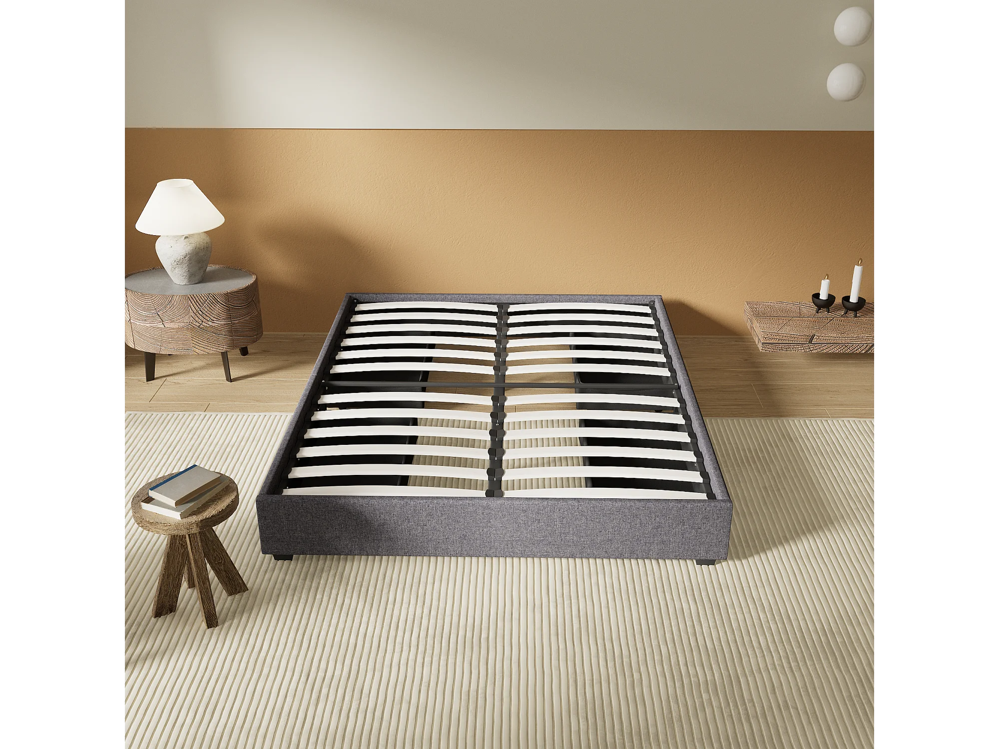 Lit 120 x 190 cm avec tiroirs, sommier à lattes en bois, cadre en tissu gris