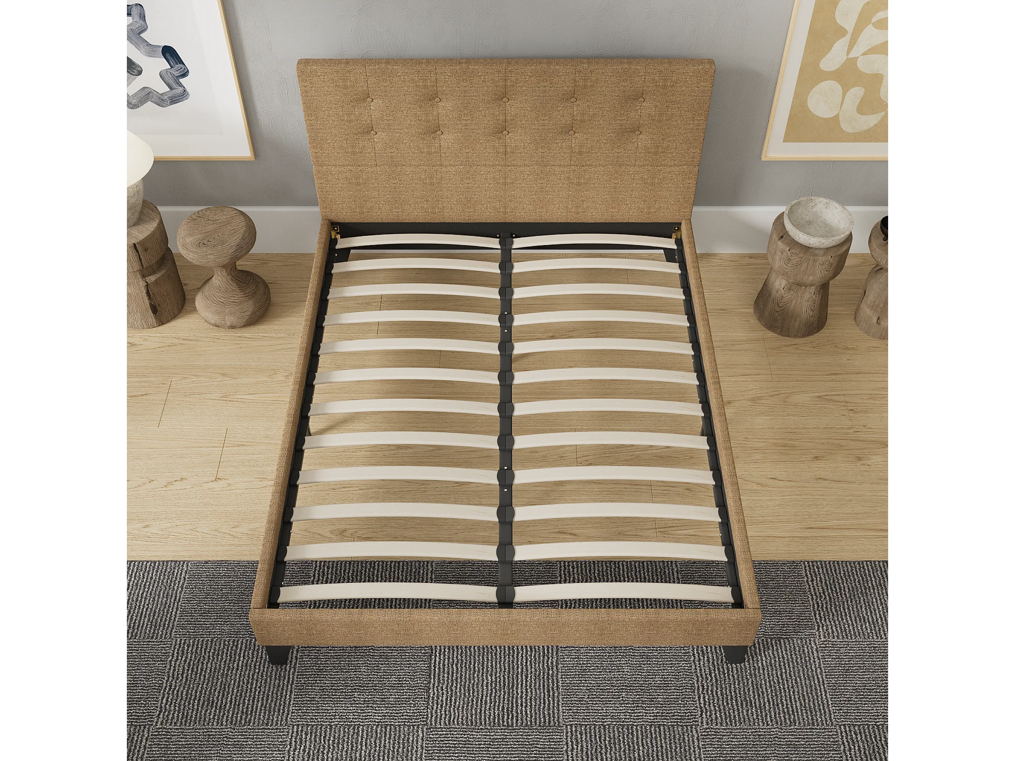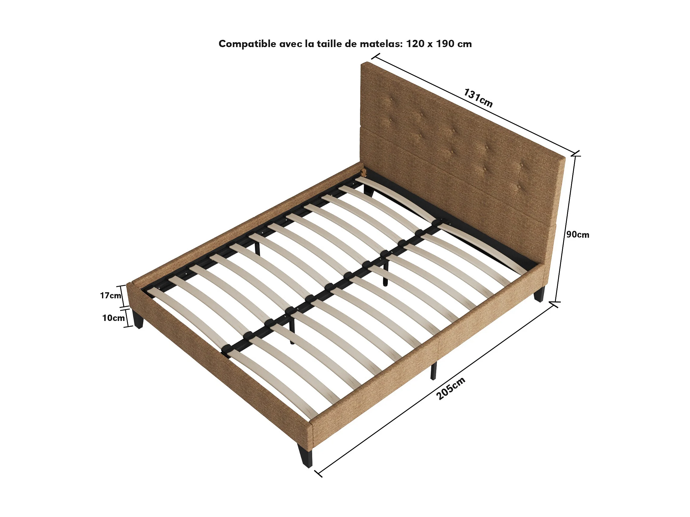 Lit 120x190 cm avec tête de lit tissu couleur brun