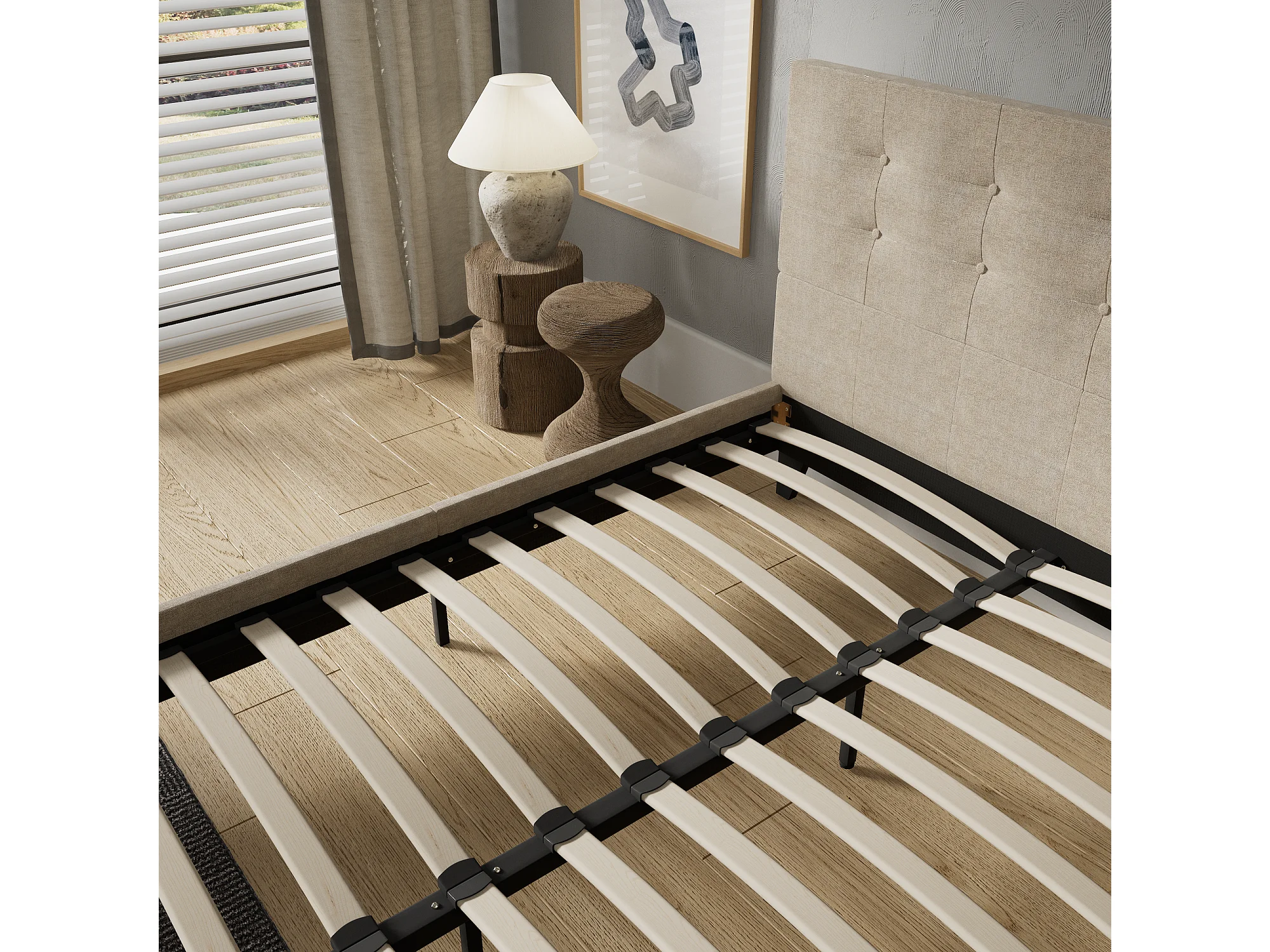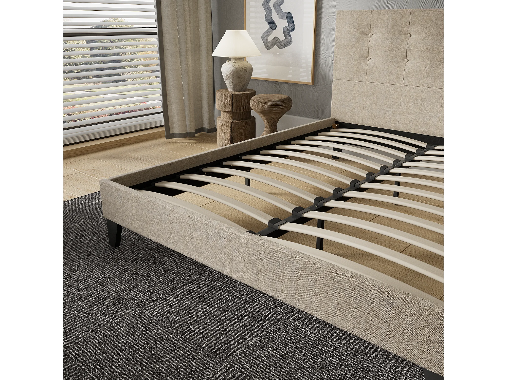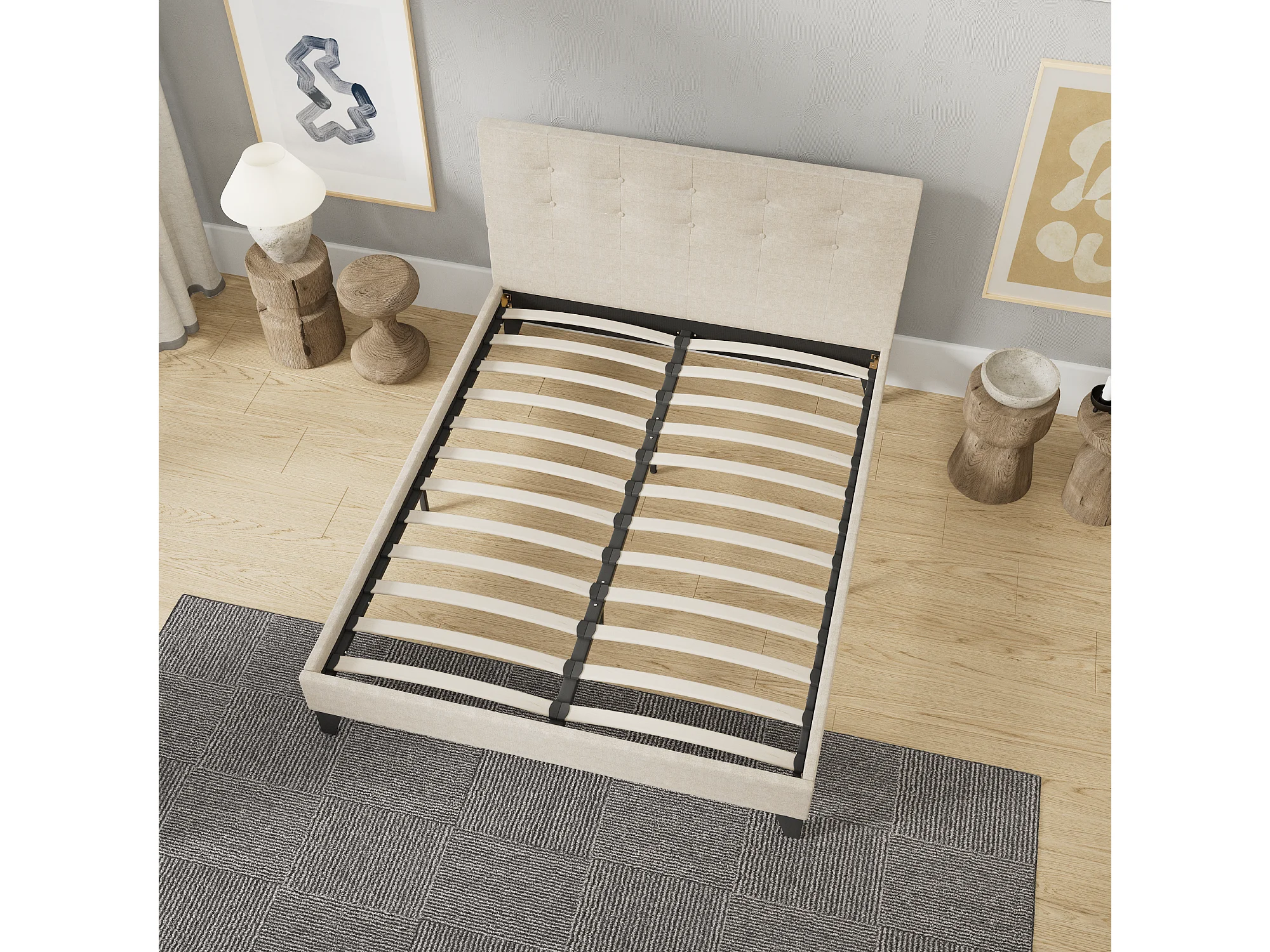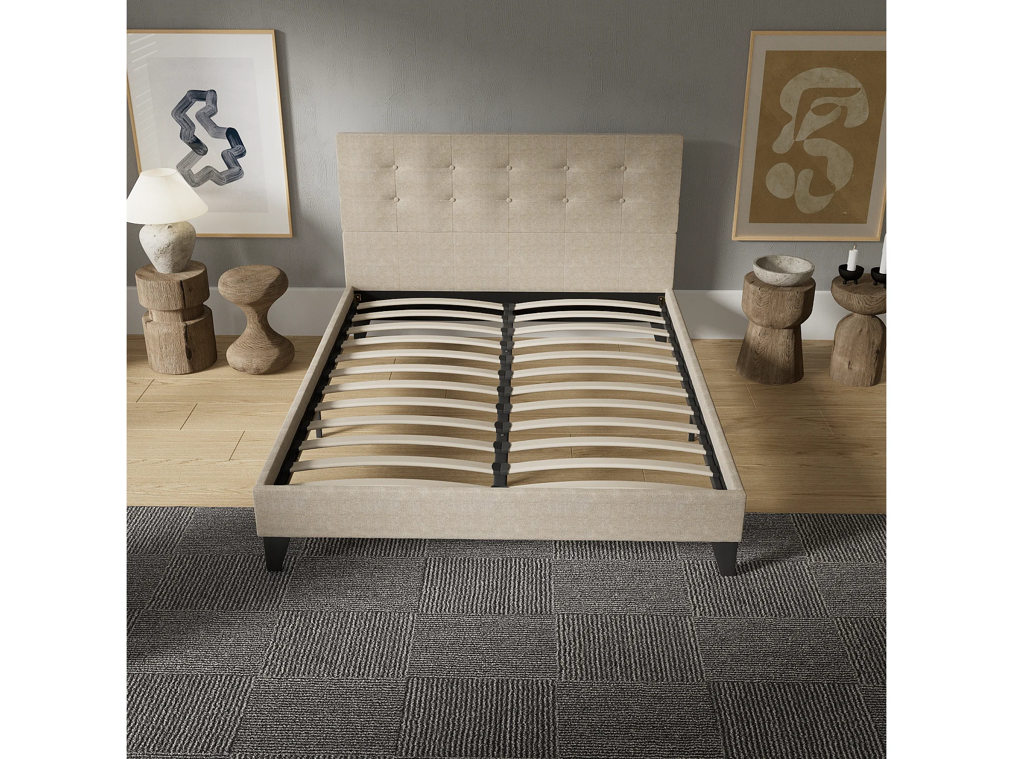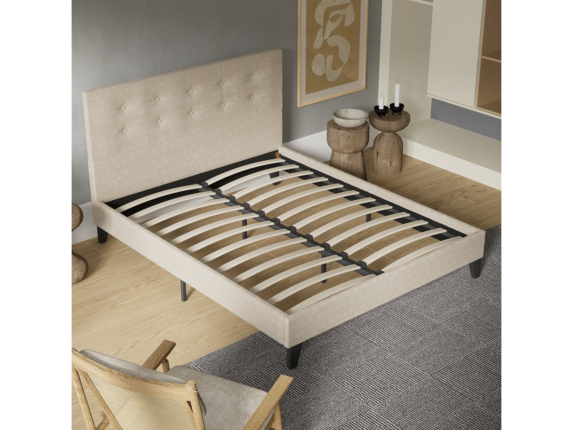 Lit 120x190 cm avec tête de lit tissu couleur lin