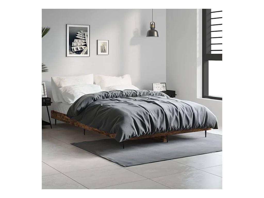 Lit-120x190 cm chêne fumé bois d'ingénierie EGGB58887