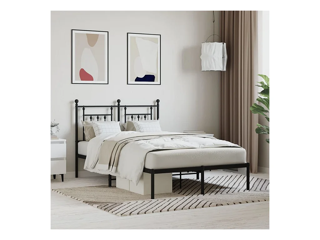 Lit double métal + tête de lit noir 120x190 cm FR67011