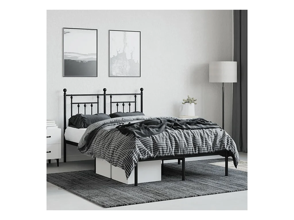 Lit double métal + tête de lit/pied de lit noir 120x190 cm FR29650