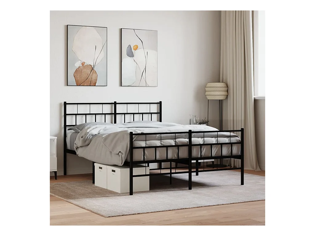 Lit double métal + tête de lit/pied de lit noir 120x190 cm FR29650