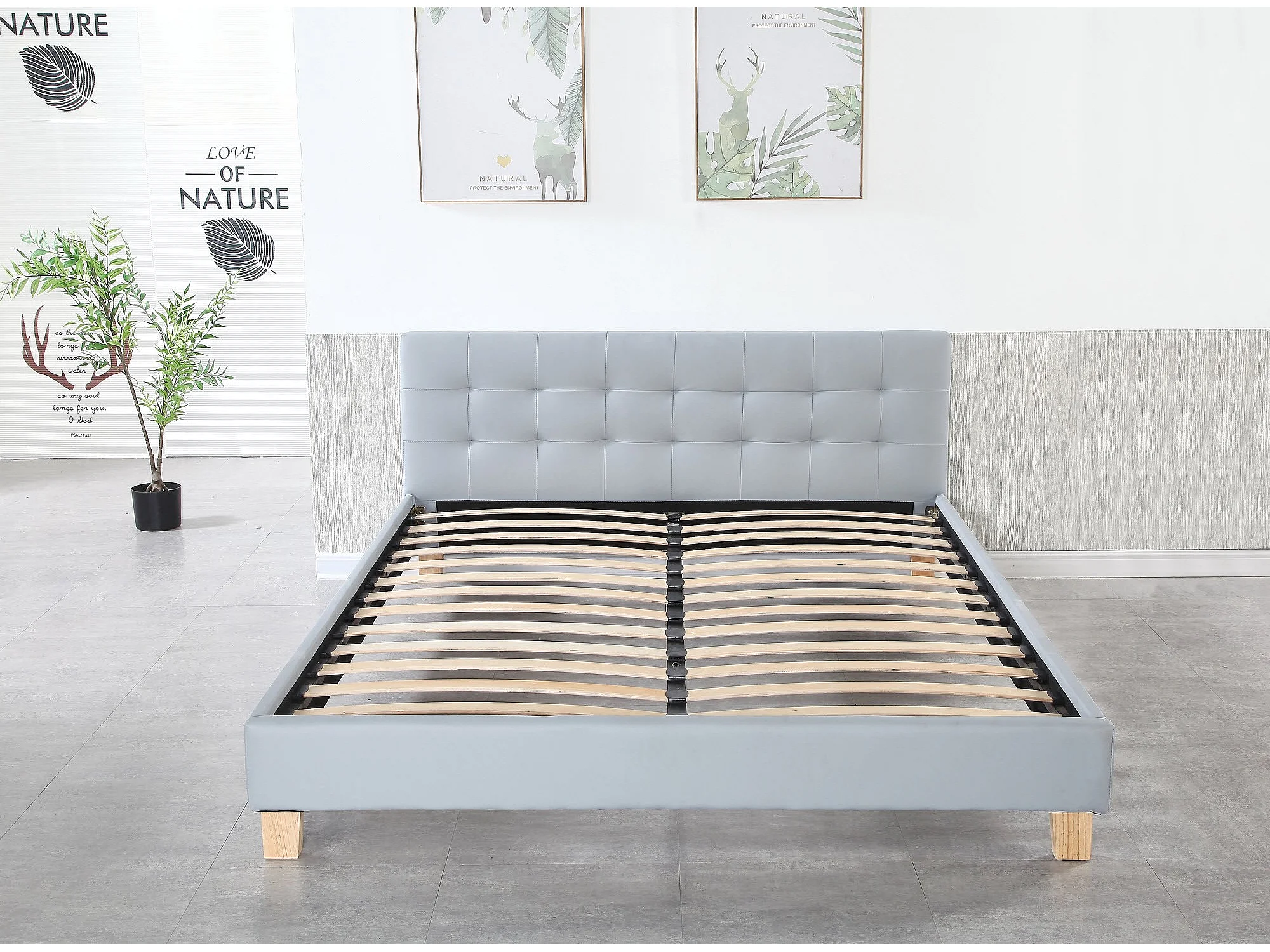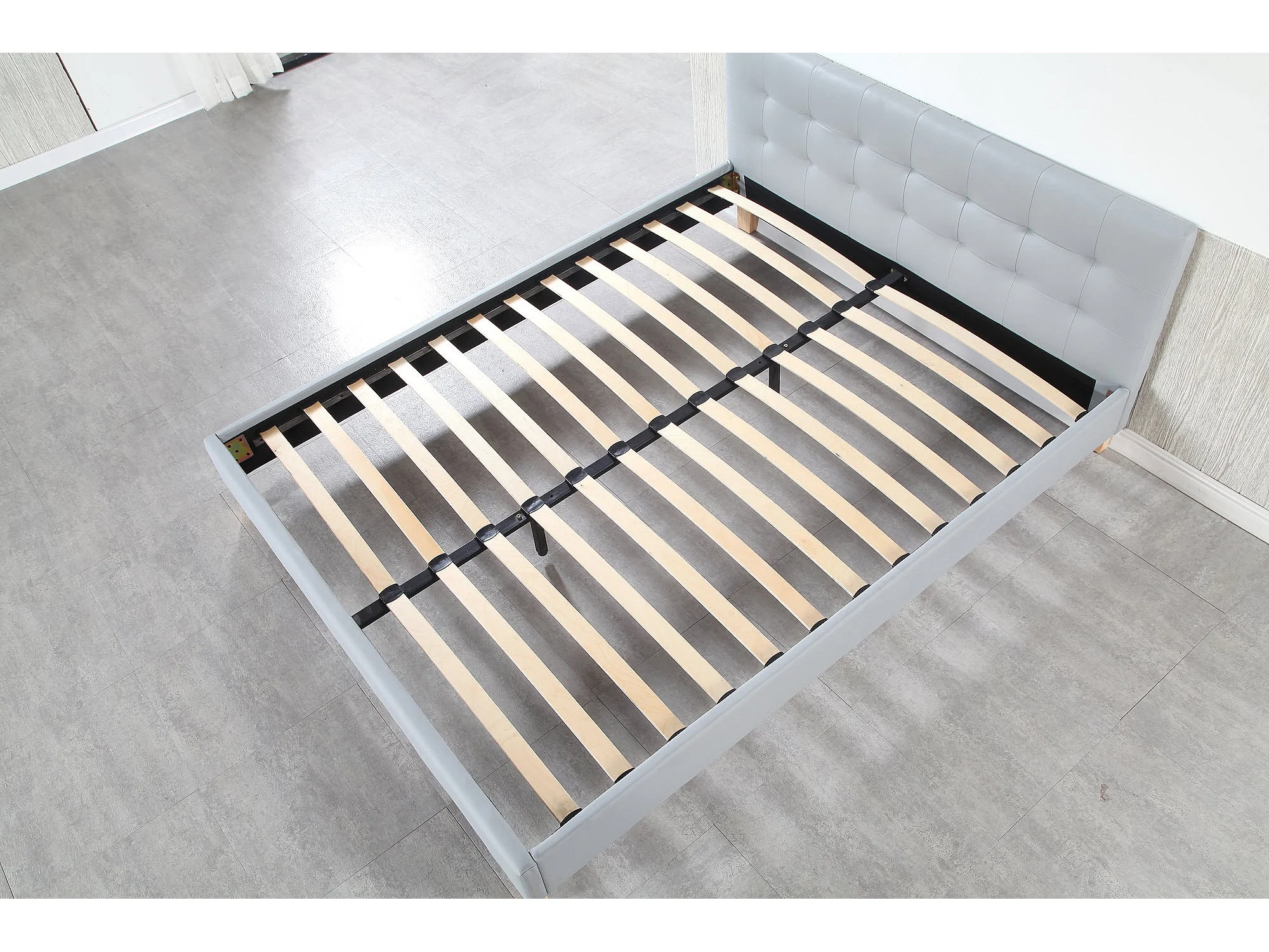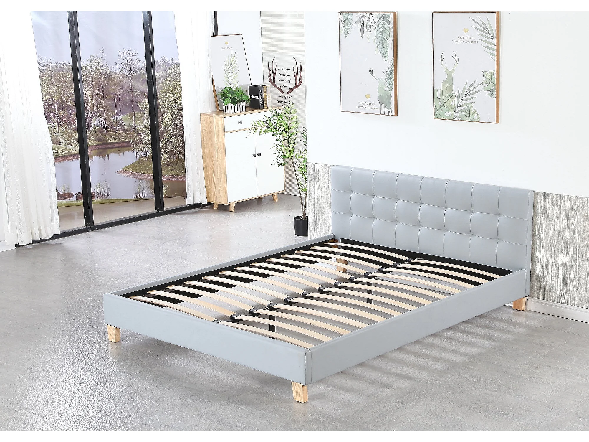 Lit 120x190 Confortable avec Sommier et Tête de Lit Capitonnée - Couleur GRIS - 13 Lattes - Revêtement PVC Simili - Montage Rapide et Facile - LIT FREDERIC GRIS