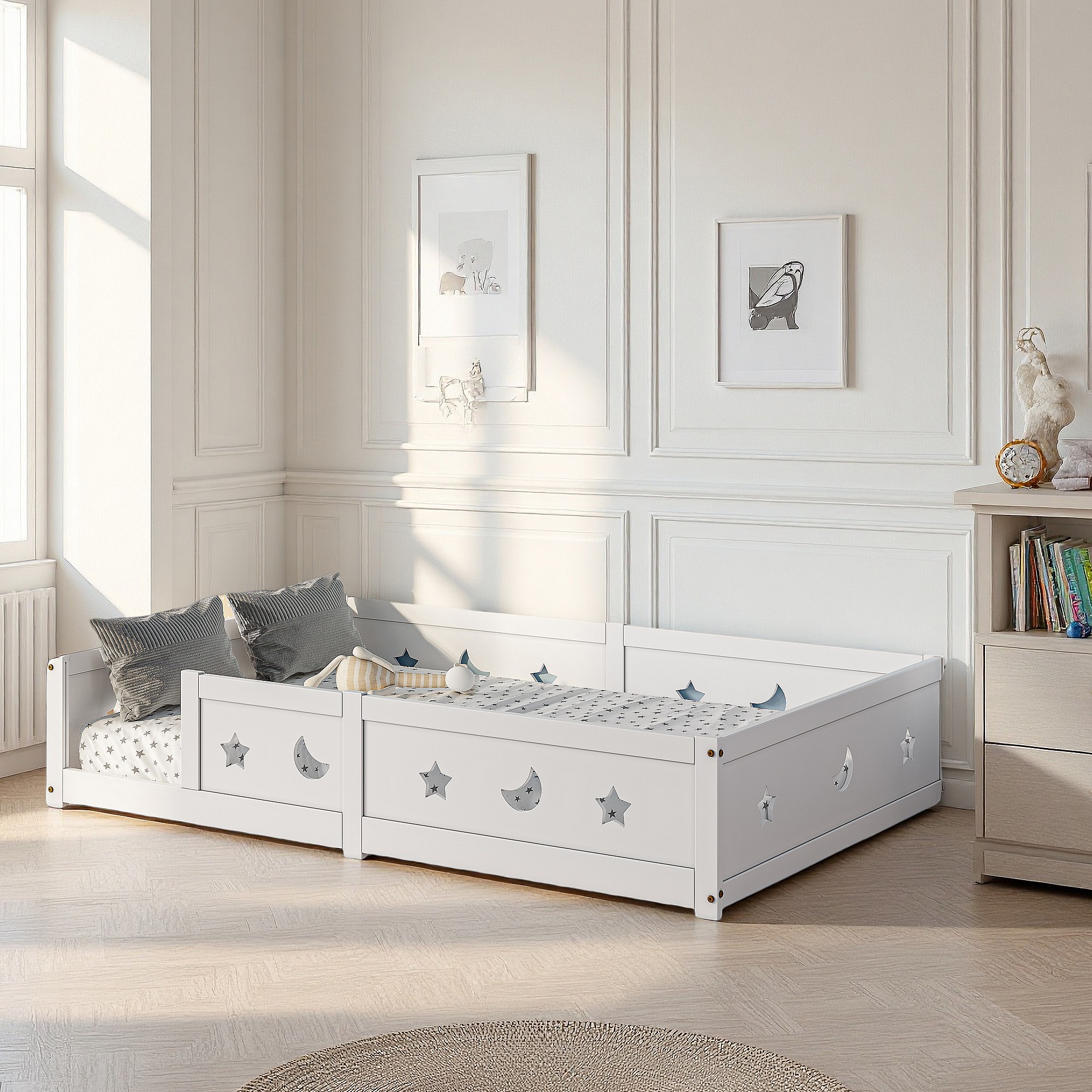 Lit 120x200 cm - lit enfant 120x200 cm avec Led - tissu en velours - lit de clôture 120x200 cm - cadre de lit 120x200 cm - blanc