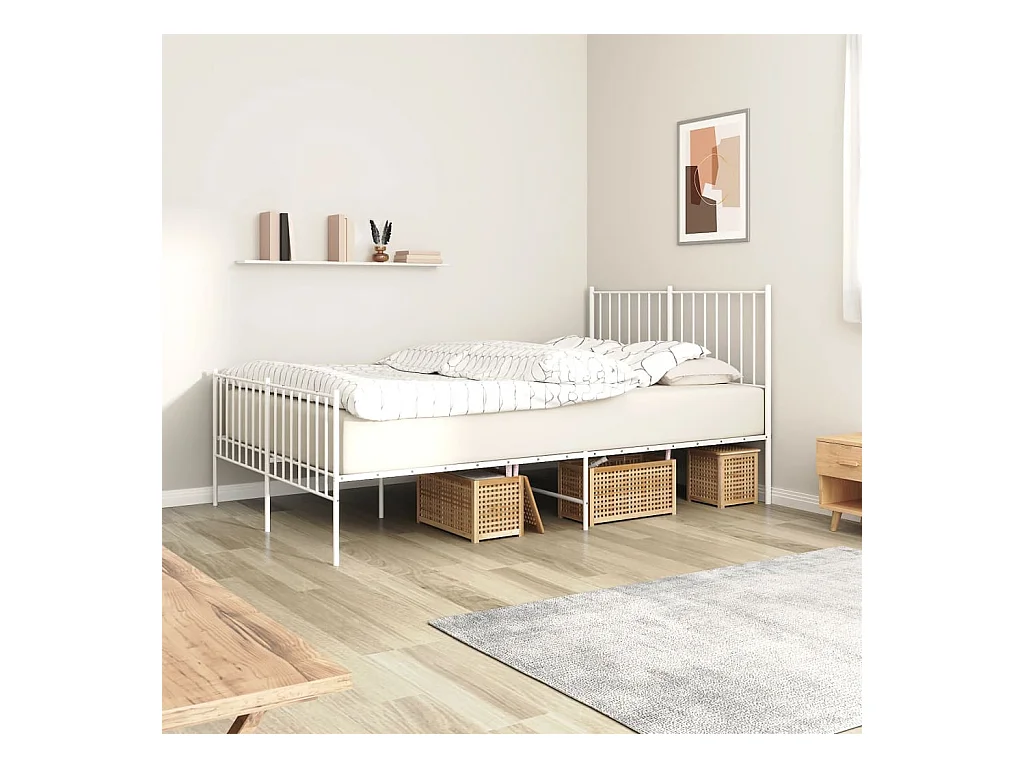 Lit-120x200 cm métal avec tête de lit/pied de lit blanc EGGB59255