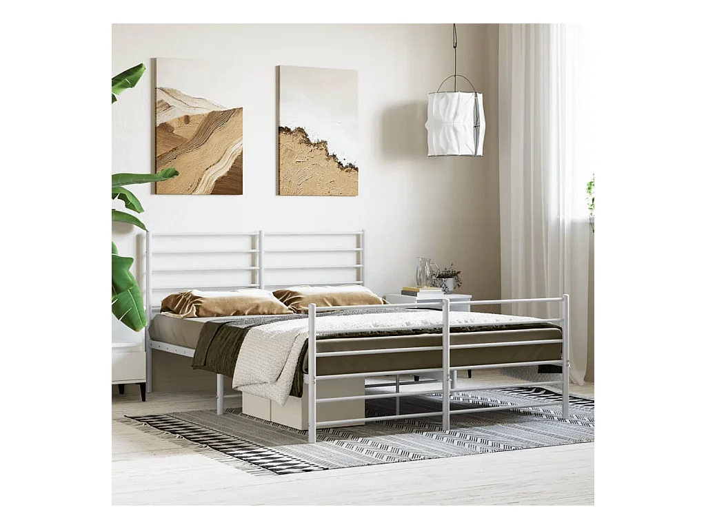 Lit-120x200 cm métal avec tête de lit/pied de lit blanc EGGB86113