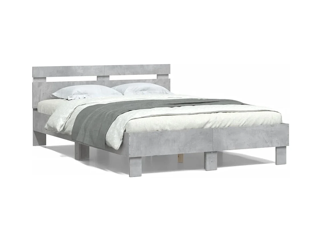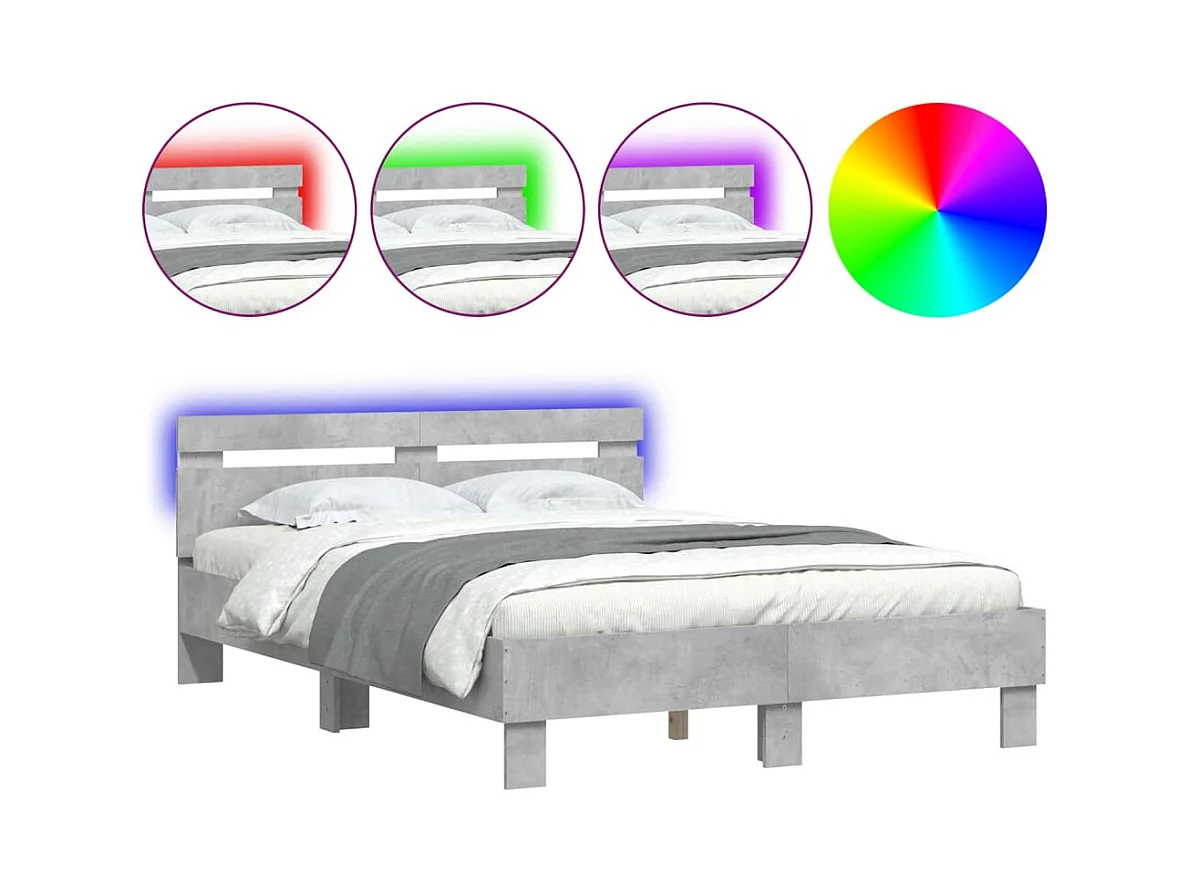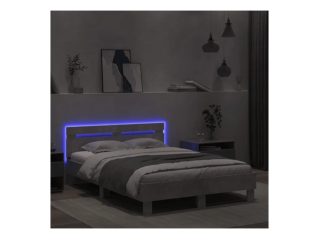 Lit-120x200 cm + tête de lit et LED gris béton HOQW75719