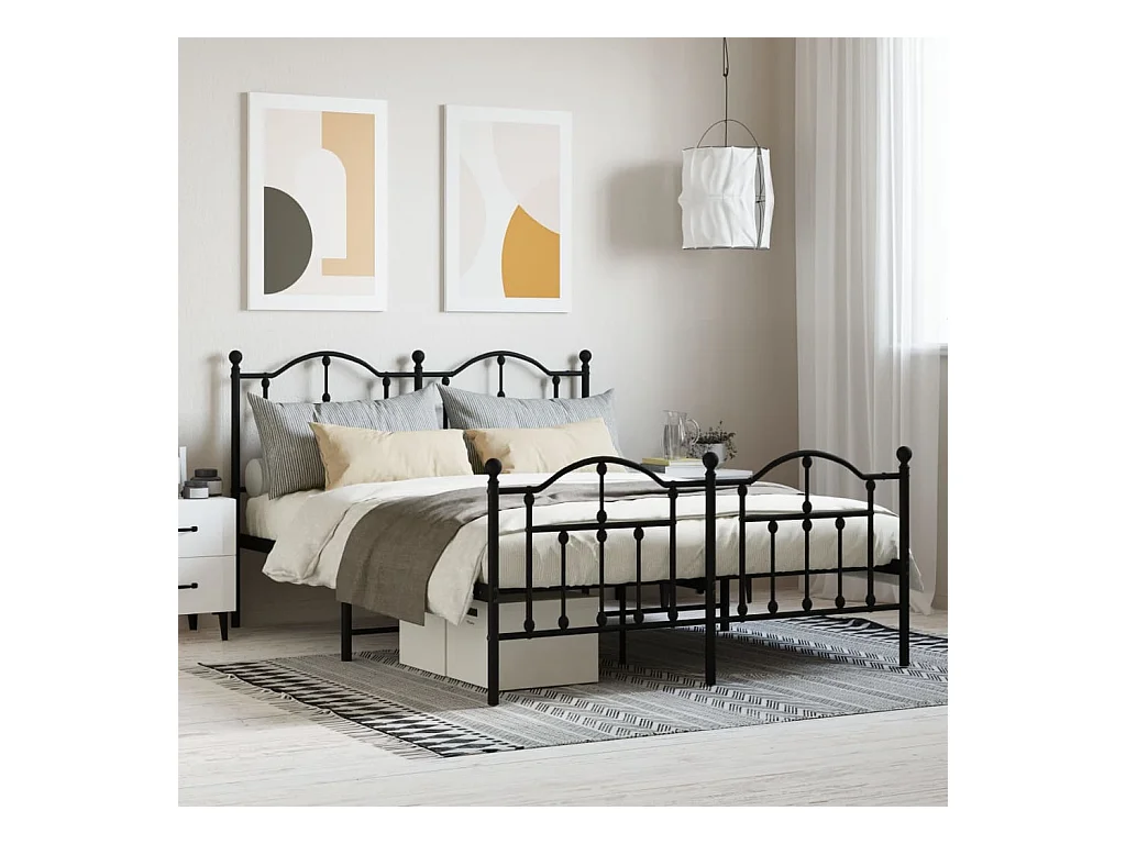 Lit-135x190 cm métal avec tête de lit/pied de lit noir EGGB53273