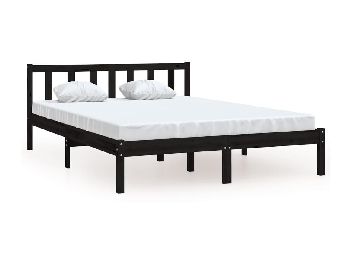 Lit-135x190 cm Noir Bois de pin massif Double EGGB94295