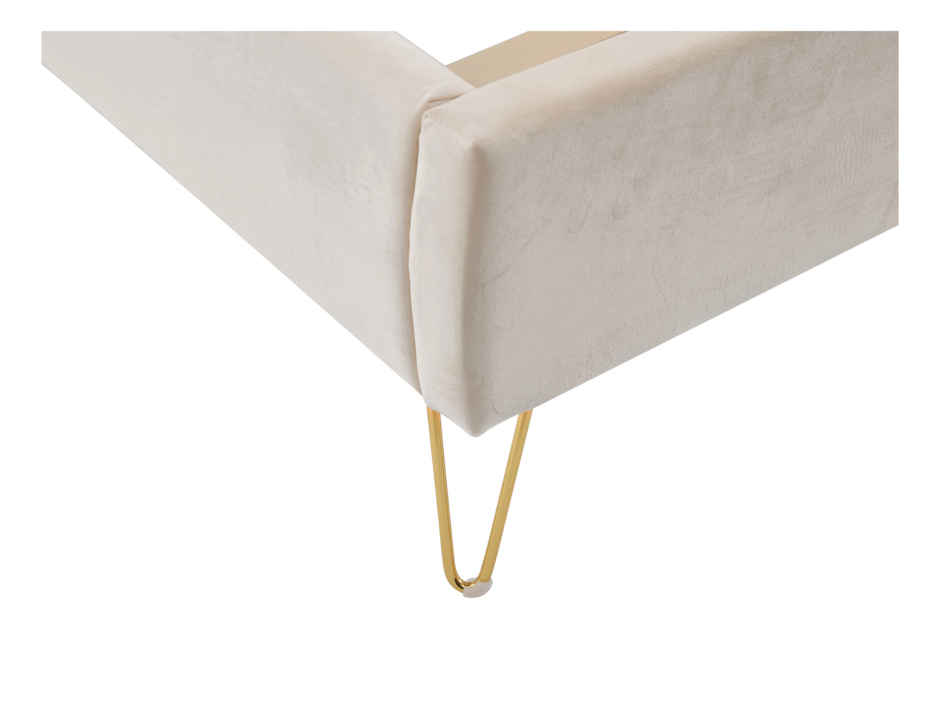 Lit 140 x 190 cm avec tête de lit ondulée - Velours - Beige - SAGALI
