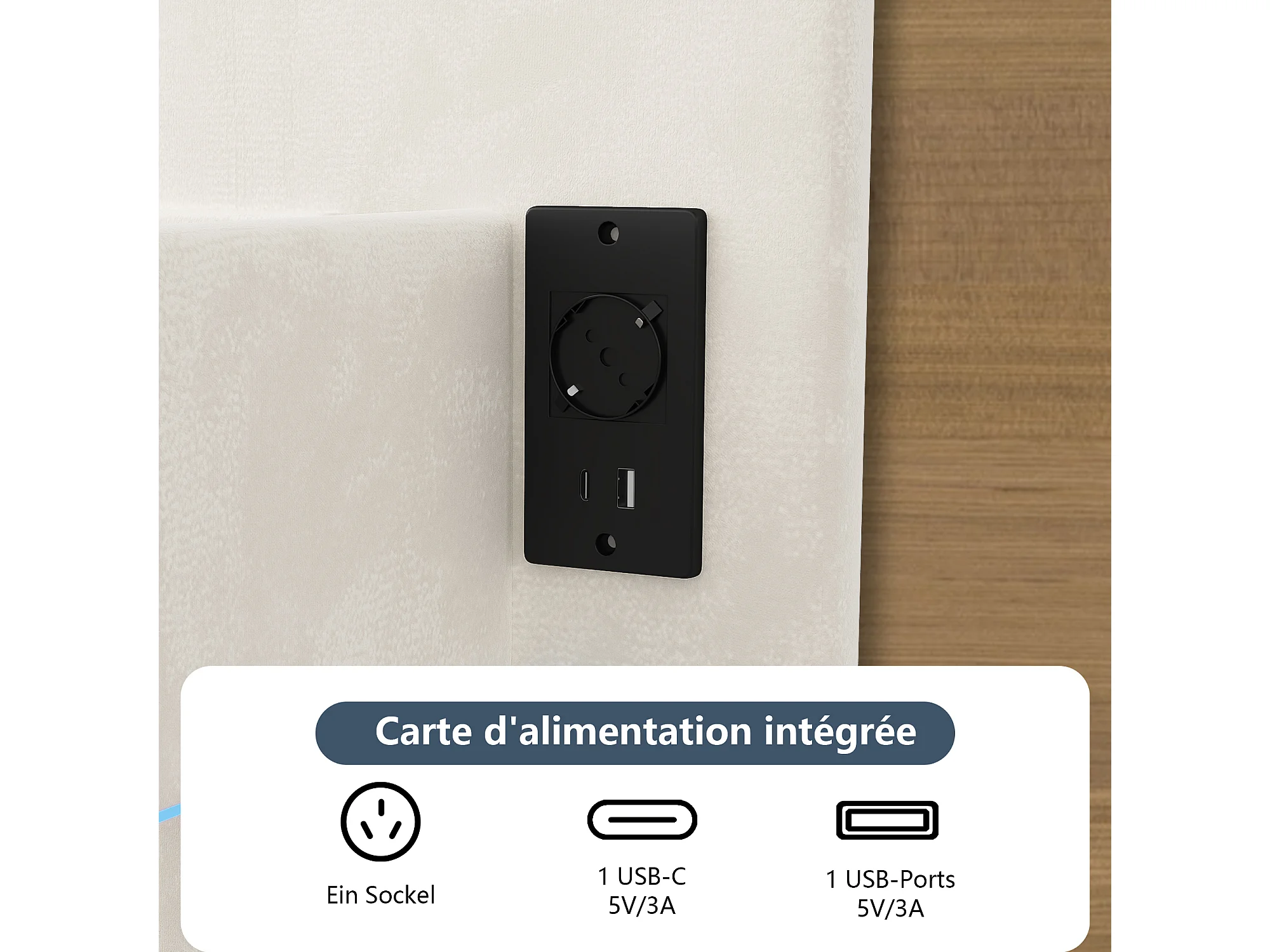 Lit 140 x 190 cm Design Flottant avec LED - USB, Cadre de Lit Double avec Sommier , Velours, Blanc