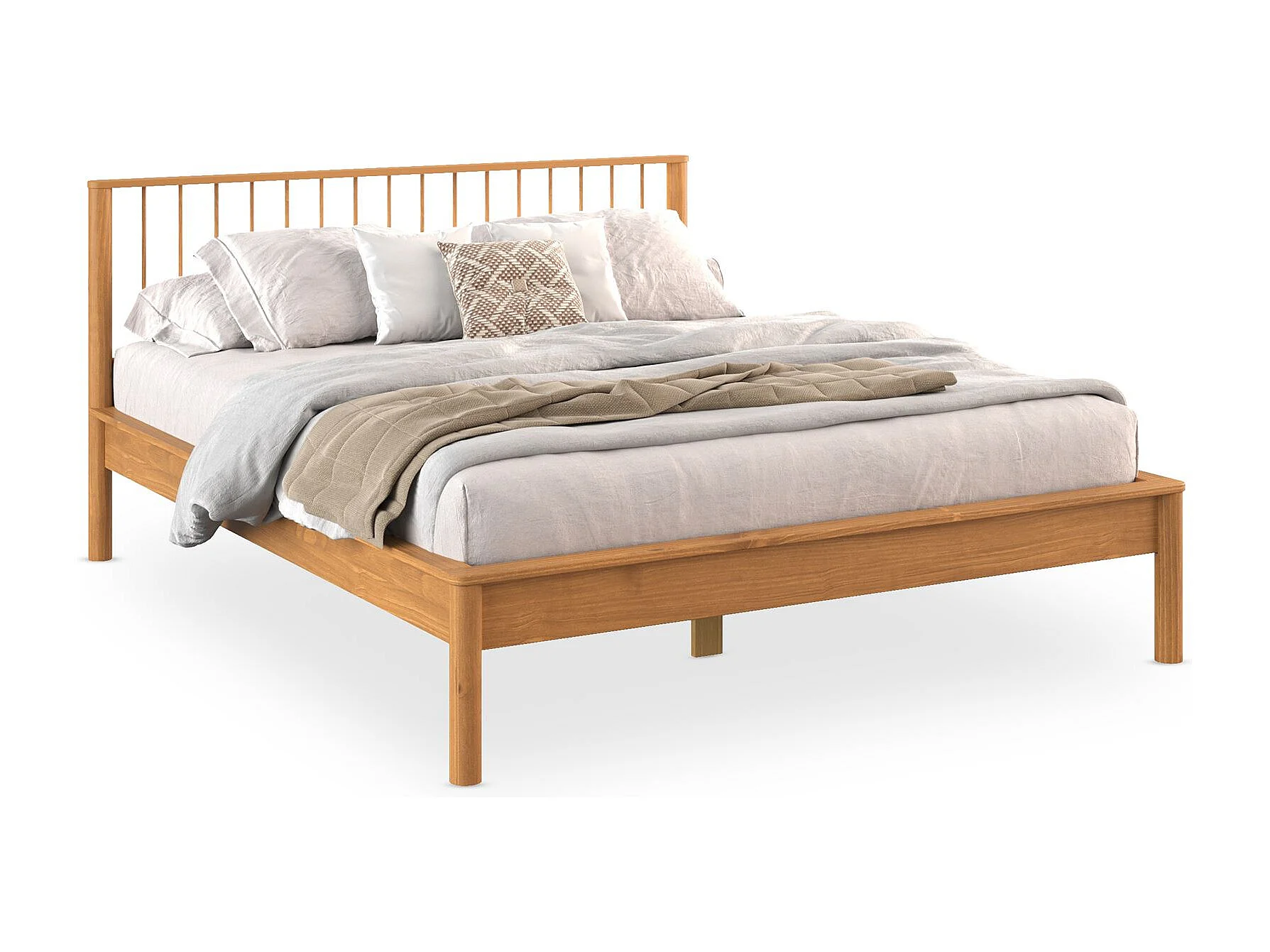 Lit 140 x 200 avec sommier APOANA en bois massif coloris chêne, cadre robuste avec tête de lit à barreaux