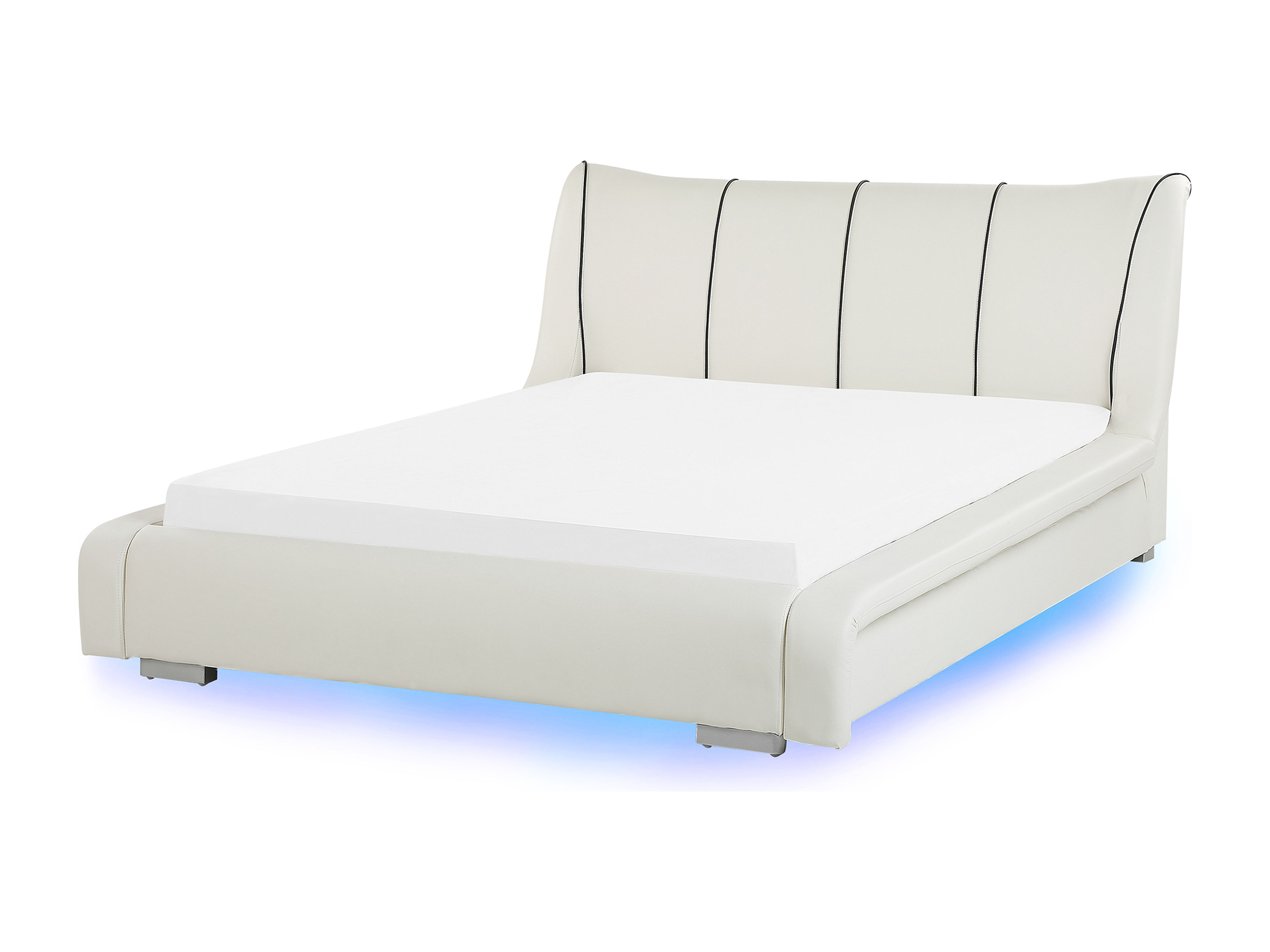 Lit avec LED Cuir NANTES 140 x 200 cm LED Blanc cassé