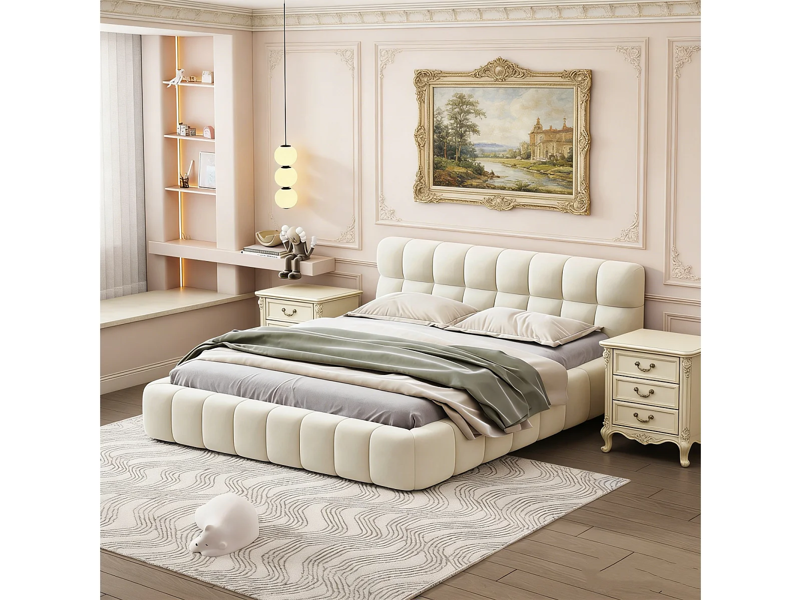 Lit 140x190 cm avec Sommier à Lattes, Lits 2 Personnes Capitonne avec Tête de Lits, sans Matelas, Lin