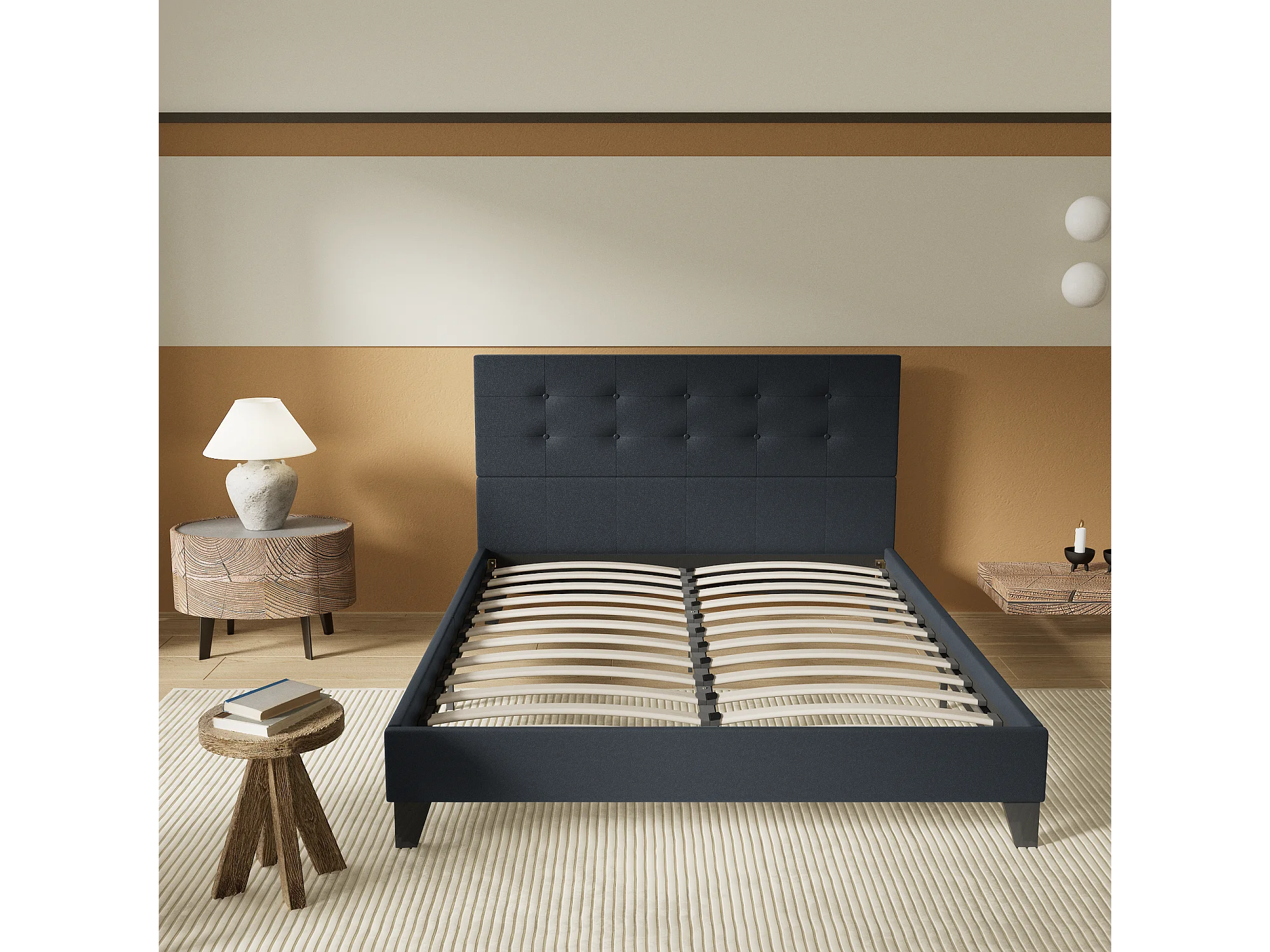 Lit 140x190 cm avec tête de lit similicuir couleur noir
