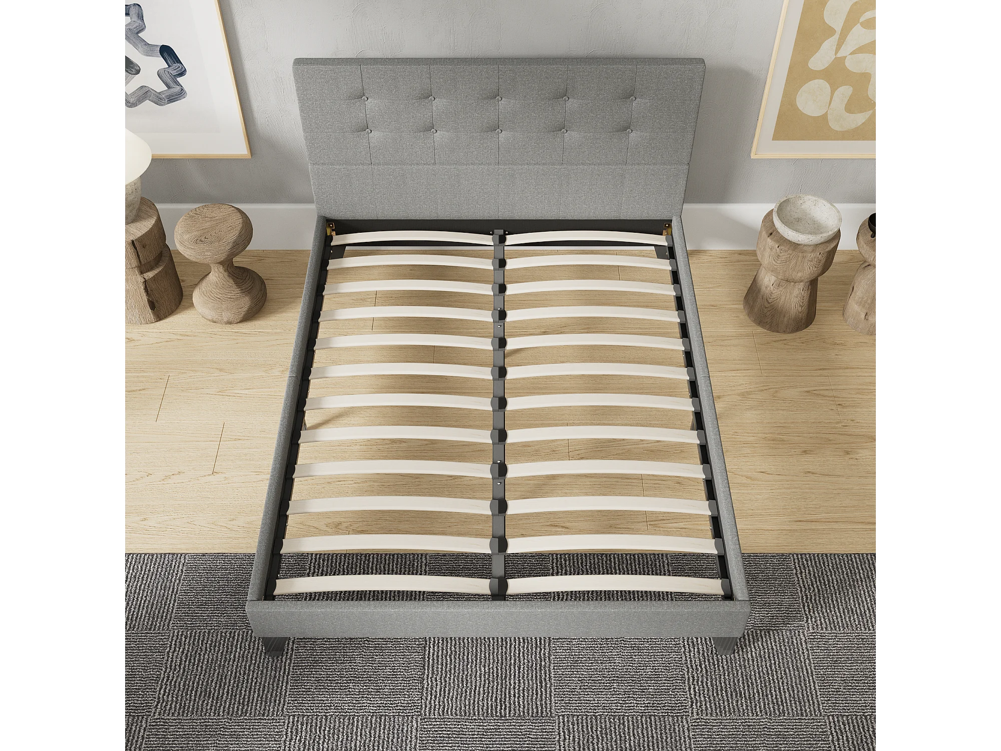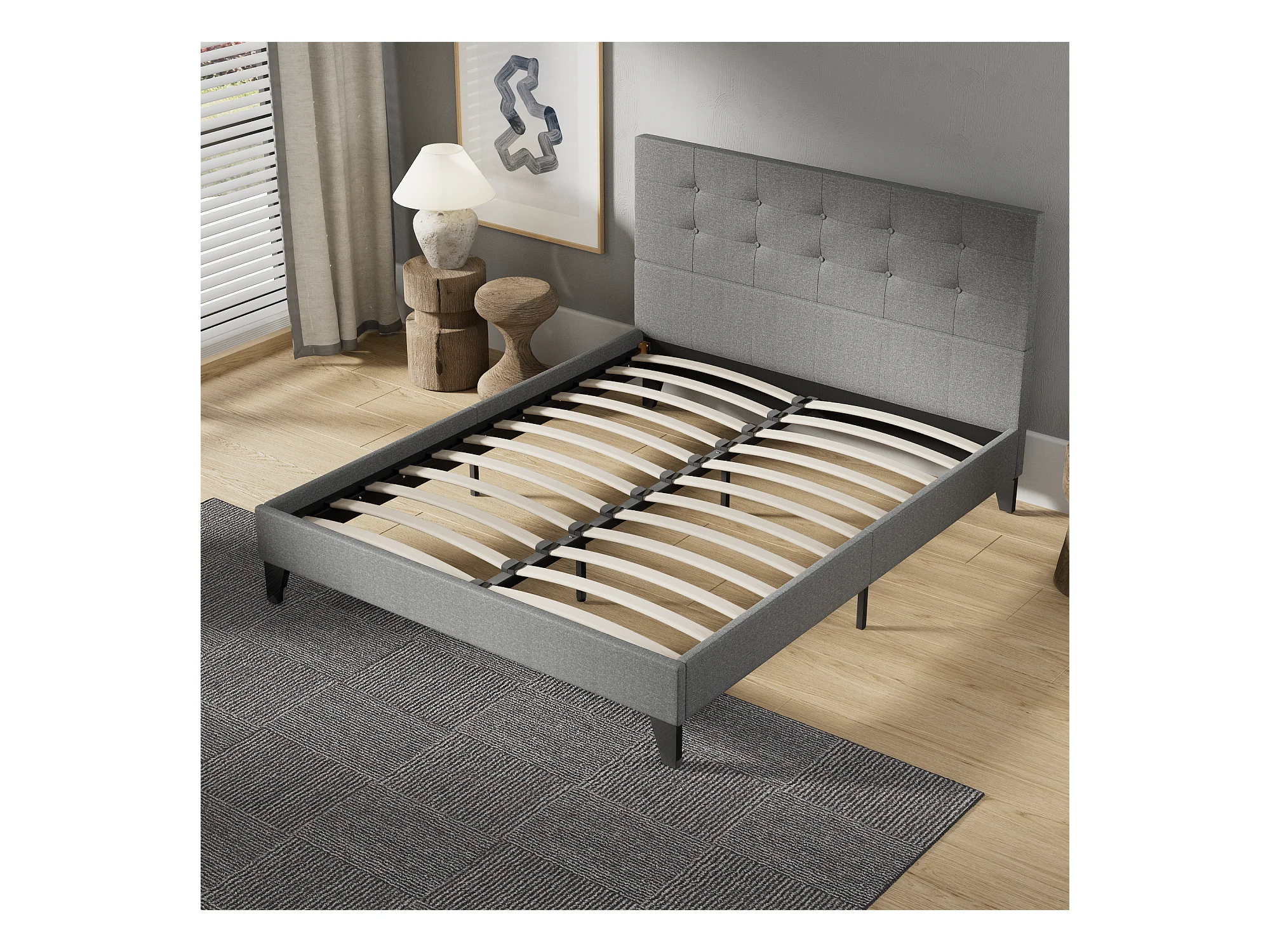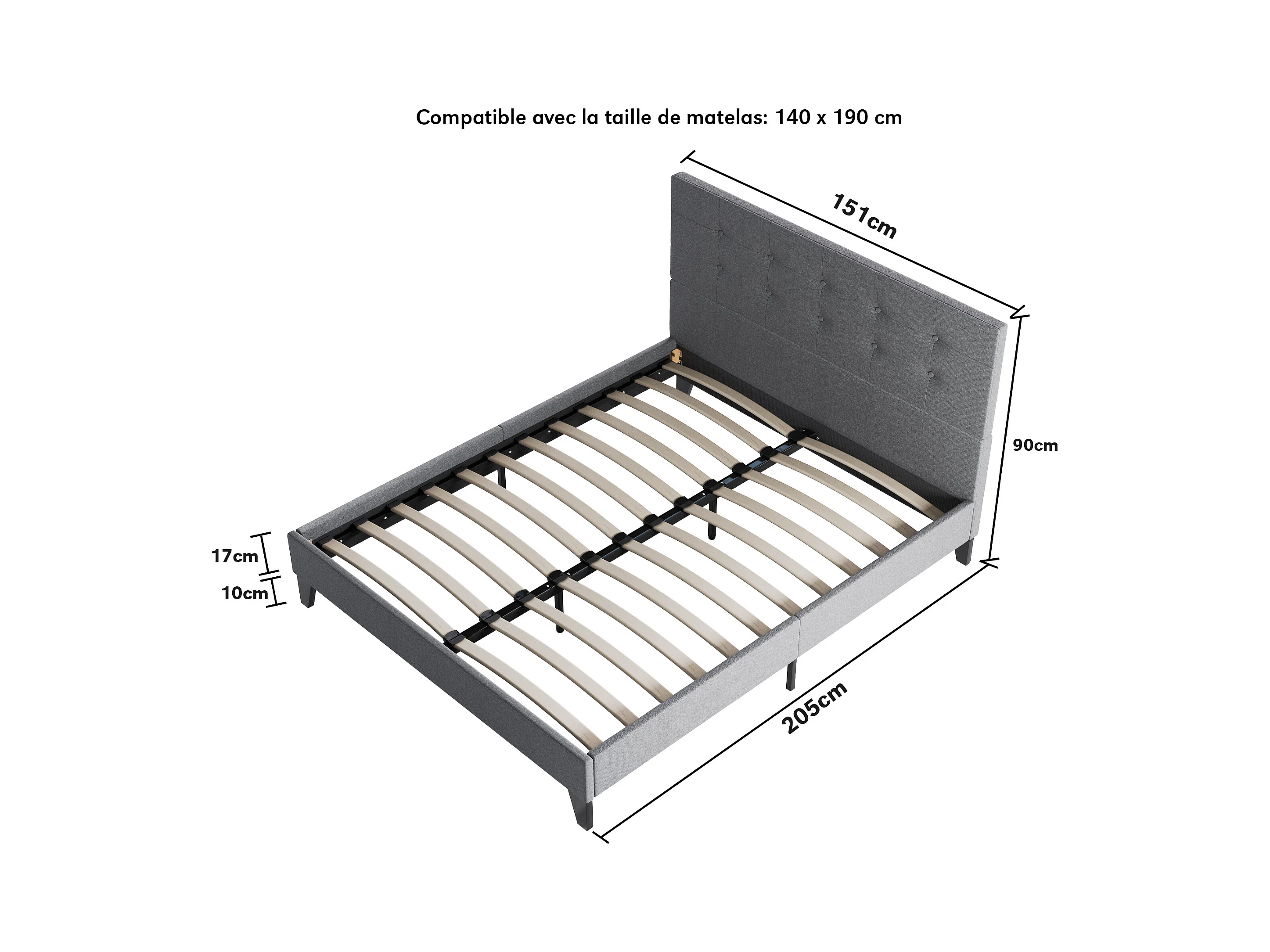 Lit 140x190 cm avec tête de lit tissu couleur gris